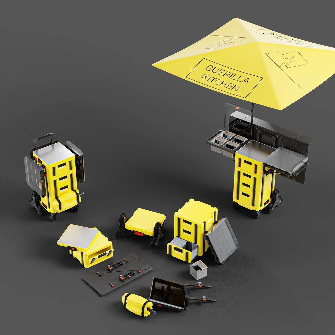 Guerilla Kitchen一款紧凑的模块化街头厨房,Guerilla Kitchen是Erik Mantz-Hansen为城市准备的街头小吃便携厨房。