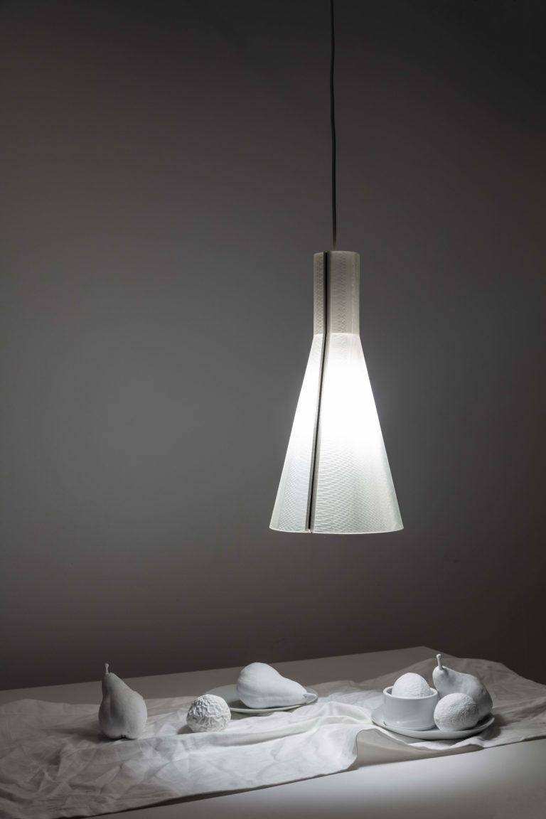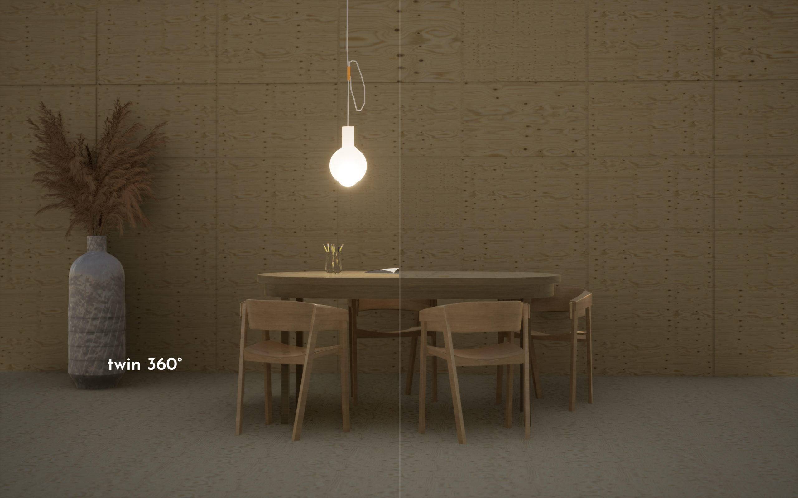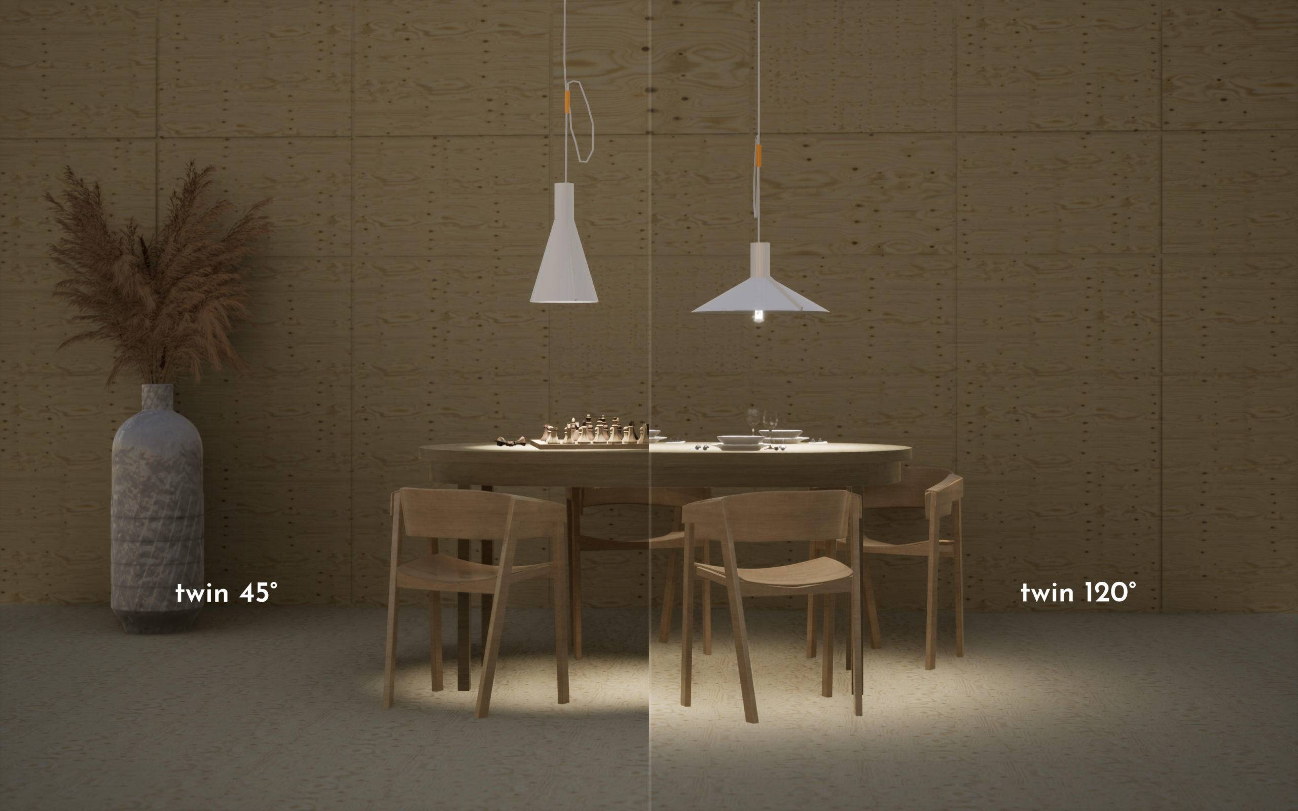 TWIN系列的三个灯罩,每款都由两个部分组成,这两个部分由于其边缘带有磁条,因此可以夹在任何简单的灯泡上。
