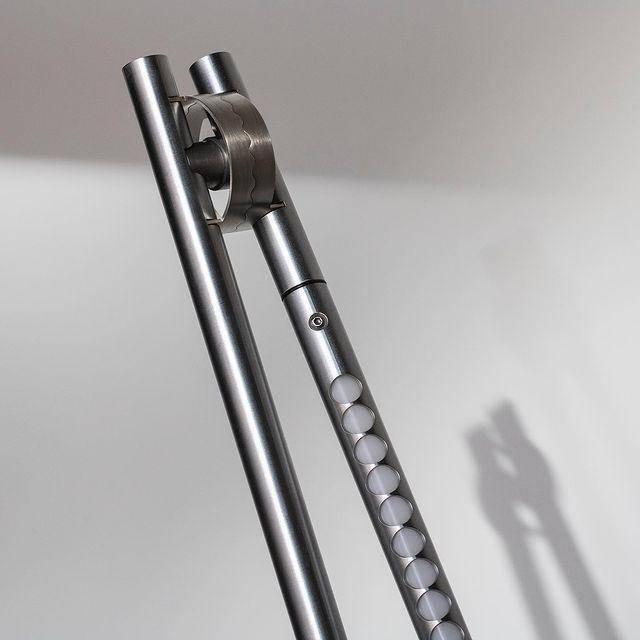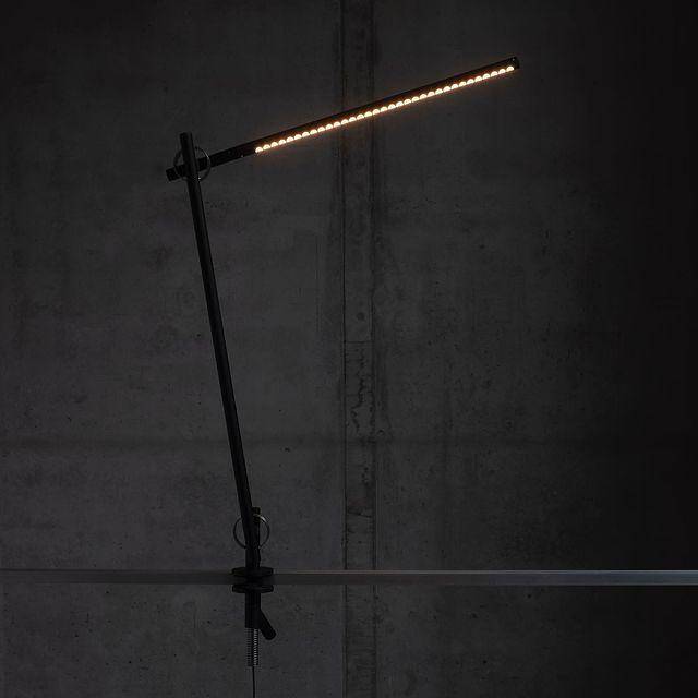 由于包括互锁环的铰链,台灯的稳定性非常好。VOLT通过节省空间的夹具固定在桌子的边缘,利用线性排列的光点提供无眩光的照明。
