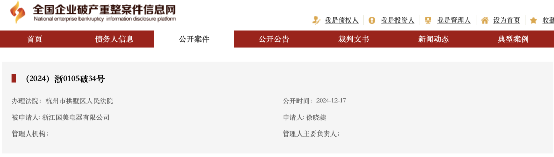 全国企业破产重整案件信息网平台显示,2月12日,出现两条最新的国美电器子公司破产清算信息,一是武汉国美电器有限公司、二是武汉国美电器售后服务有限公司。