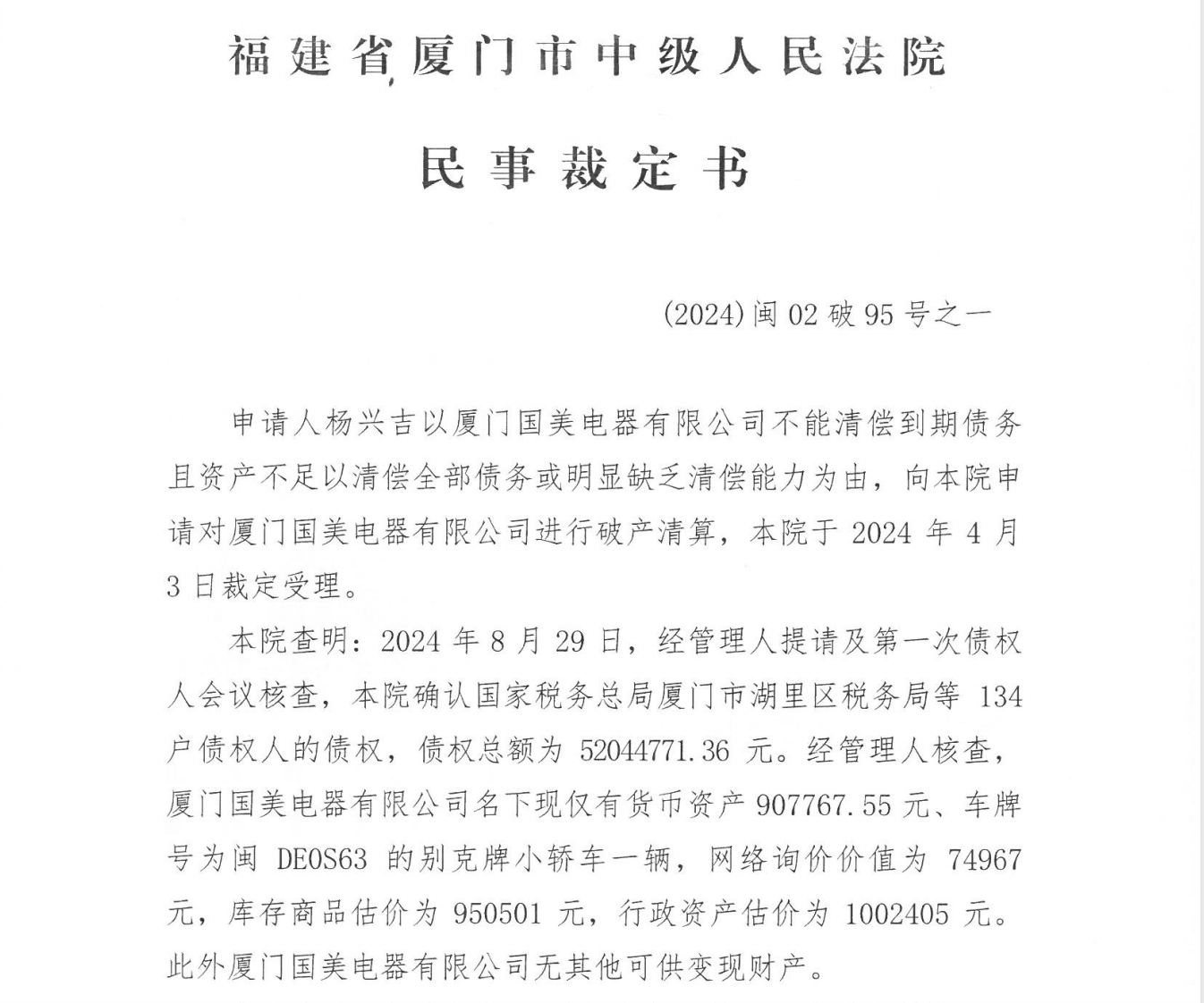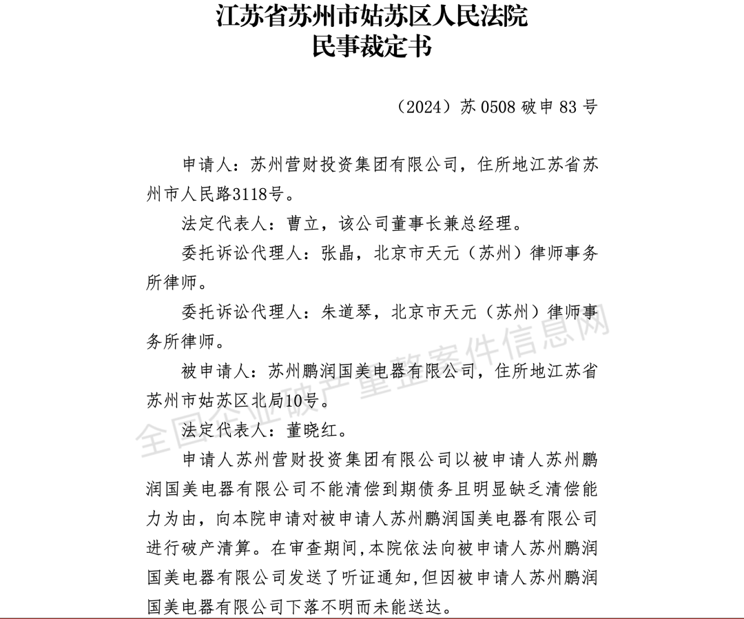 同时,还有泰州国美电器有限公司、佛山国美电器有限公司、浙江国美电器有限公司、苏州鹏润国美电器有限公司正在申请破产。