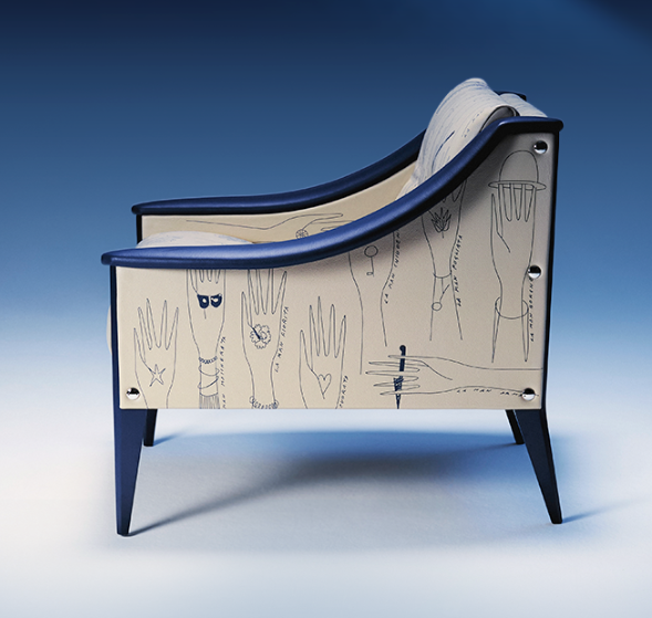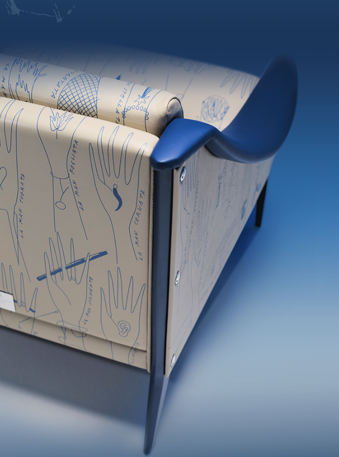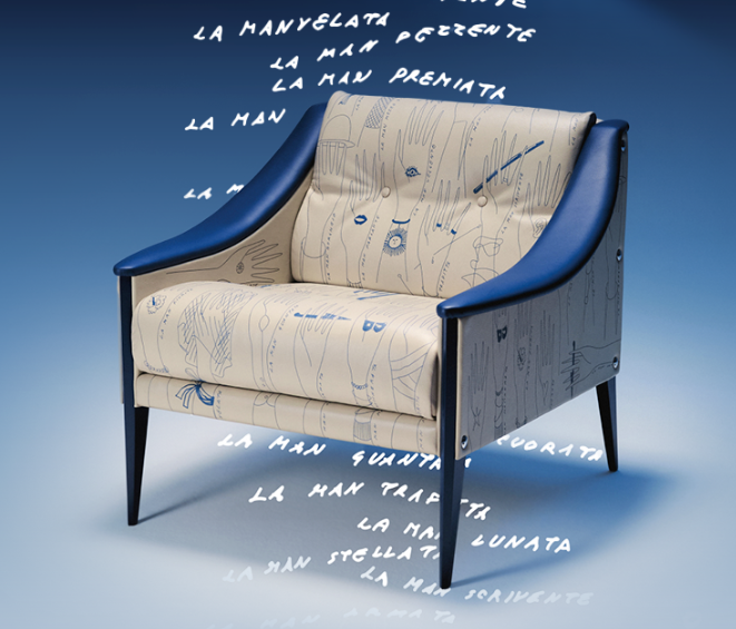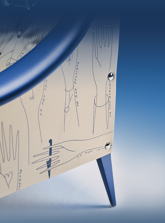 事实上,这正是一个能够紧密联结我们这位艺术大师多面性创意表达的世界。手绘的“手”,可能小巧如字母,也可能如Dezza扶手椅限量版上装饰叙事的26只手,绘画本身就是一种叙事,如同动人的童话。而陶瓷质地的“手”或相关物品,则需以恰当比例呈现,毕竟人体是最原始的度量标准,它们与人体紧密相连。