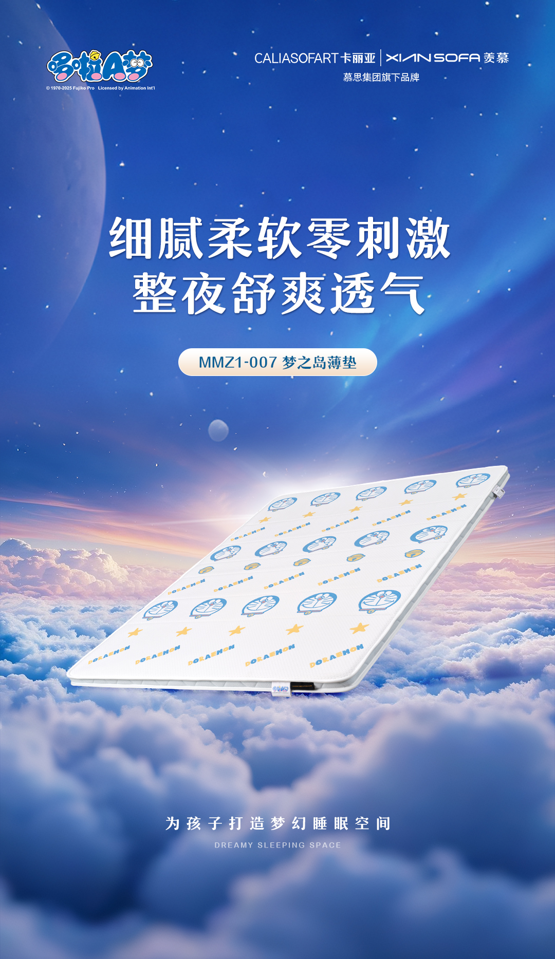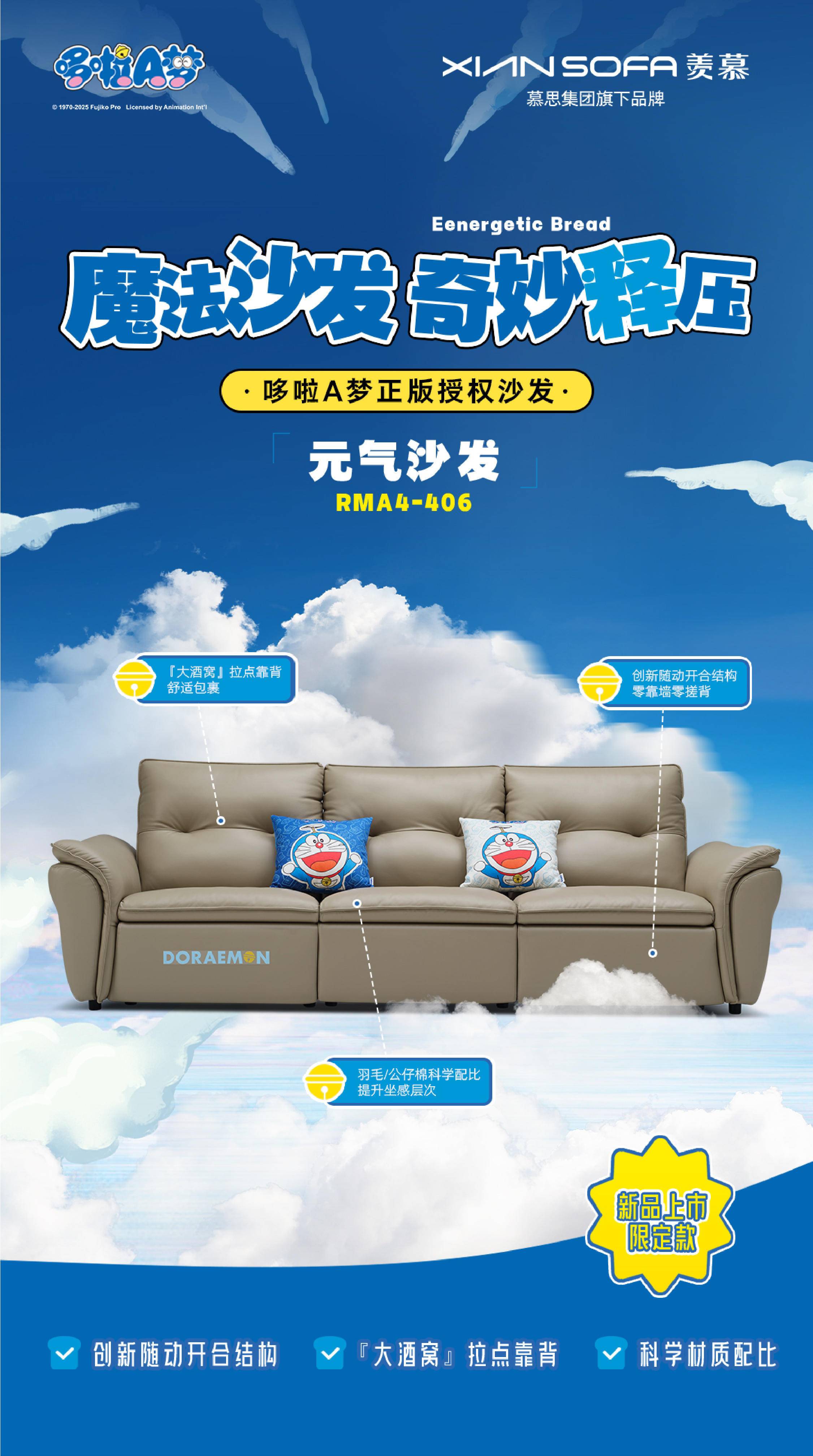 近日,慕思集团旗下品牌CALIASOFART卡丽亚与XIANSOFA羡慕正式宣布与全球经典IP哆啦A梦达成深度合作,推出“哆啦A梦相伴开启奇幻之旅”系列正版授权家居产品。此次跨界合作以“文化IP+场景设计”为核心,通过重构客厅、儿童房等生活空间,打造兼具童趣与治愈力的家居生态,不仅唤醒消费者的童年记忆,也标志着家居行业从功能主义向情感消费转型的重要趋势。