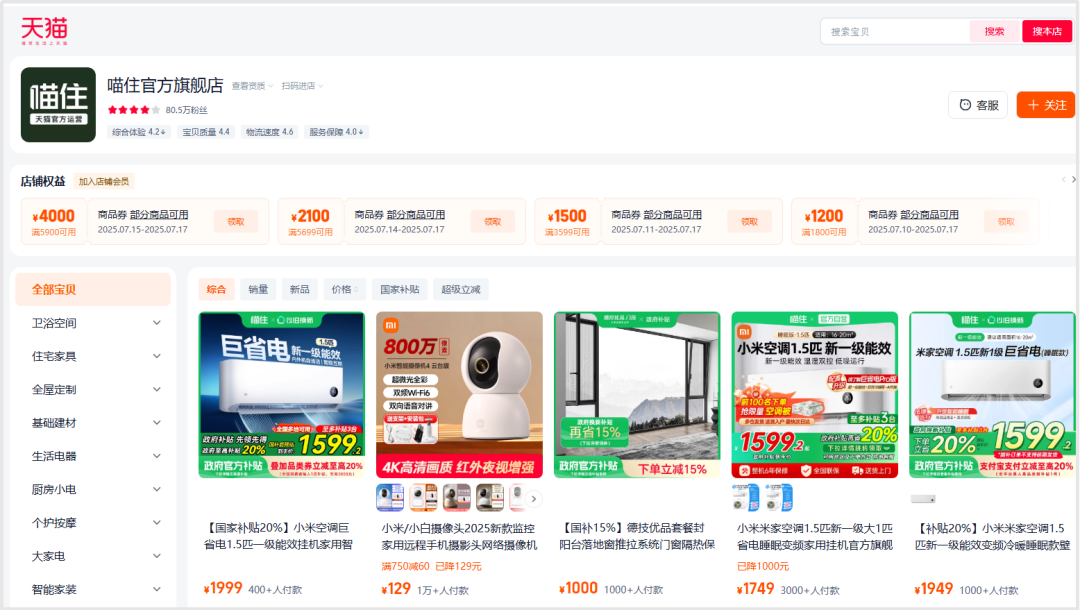 值得关注的是,喵住的成功与阿里此前折戟的"猫享"项目形成鲜明对比。业内人士指出,平台通过聚焦家居垂直领域,深度整合广州家居产业带资源,成功构建起"品质认证+自营电商+产业集群"的创新模式。今年618期间,平台家装自营成交环比增长超1200%,适老化产品实现百位数增长,展现出强劲的发展势头。