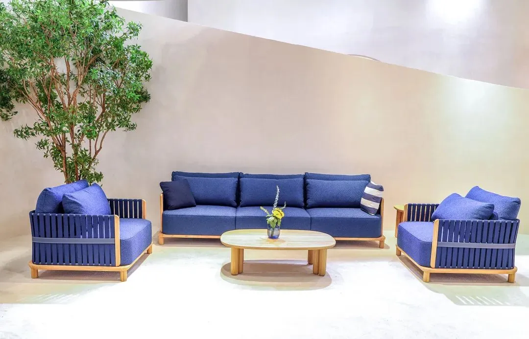 自2022年起,公司转型打造自有品牌,联手设计师赋予产品更多文化内涵。新推出的Lily系列构建出适应多元户外环境的舒适美学场景,柚木框架的自然肌理与蓝色调结合,营造自然与现代交融的意境。