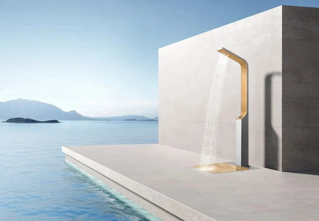 而悍高同样在今年夺得德国iF设计奖的BLADE布雷德系列户外淋浴器,凭着独具个性化的建筑感的外观引人注目,更能让人在享受豪华沐浴体验的同时与大自然身心相连。