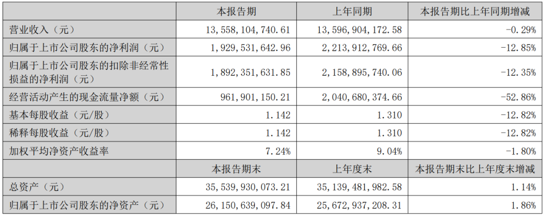 8月18日,北新建材公布2025年上半年度报告。今年上半年实现营业收入135.58亿元,同比减少0.29%;营业利润21.88亿元,同比下降11.50%;利润总额21.83亿元,同比下降10.64%;归母净利润19.30亿元,同比减少12.85%;归母扣非净利润18.92亿元,同比减少12.35%。基本每股收益1.142元/股,同比下降12.82%。