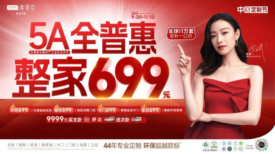 面对房价高企、预算有限与信息过载的家装消费困境,如何让高品质定制家居不再是少数人的特权,成为行业领军者需要回答的关键问题。2025年9月,索菲亚重磅启动第二届中国定制节,推出“5A全普惠·整家699”全球限时限量惠民政策,旨在以一场彻底的价格模式革新,重新校准家居消费的“价值天平”。
