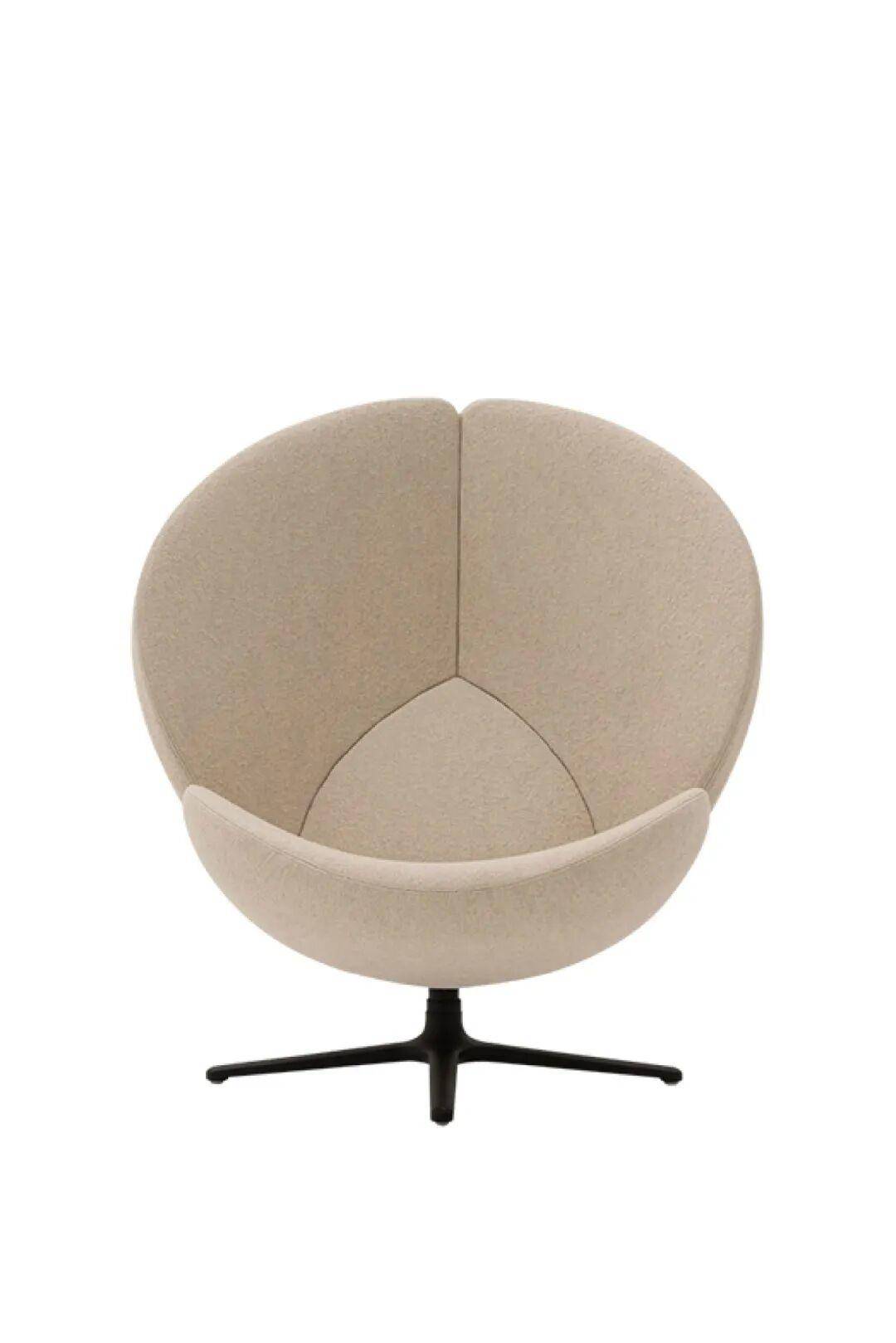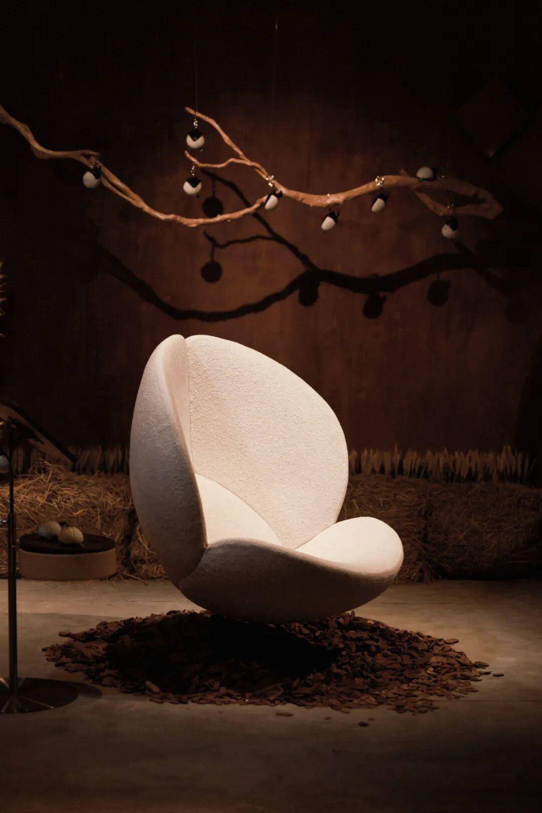梵几首次亮相的「甲虫转椅」成为焦点,其独特的三维立体造型特别引人注目。设计师从甲虫形态中汲取灵感,椅背呈现出昆虫"翅甲"般的自然弧度,形成一个柔软的环抱式座舱。椅身采用高密度回弹海绵与进口羊毛混纺面料,在提供足够支撑的同时,也确保了坐感的舒适与温暖。