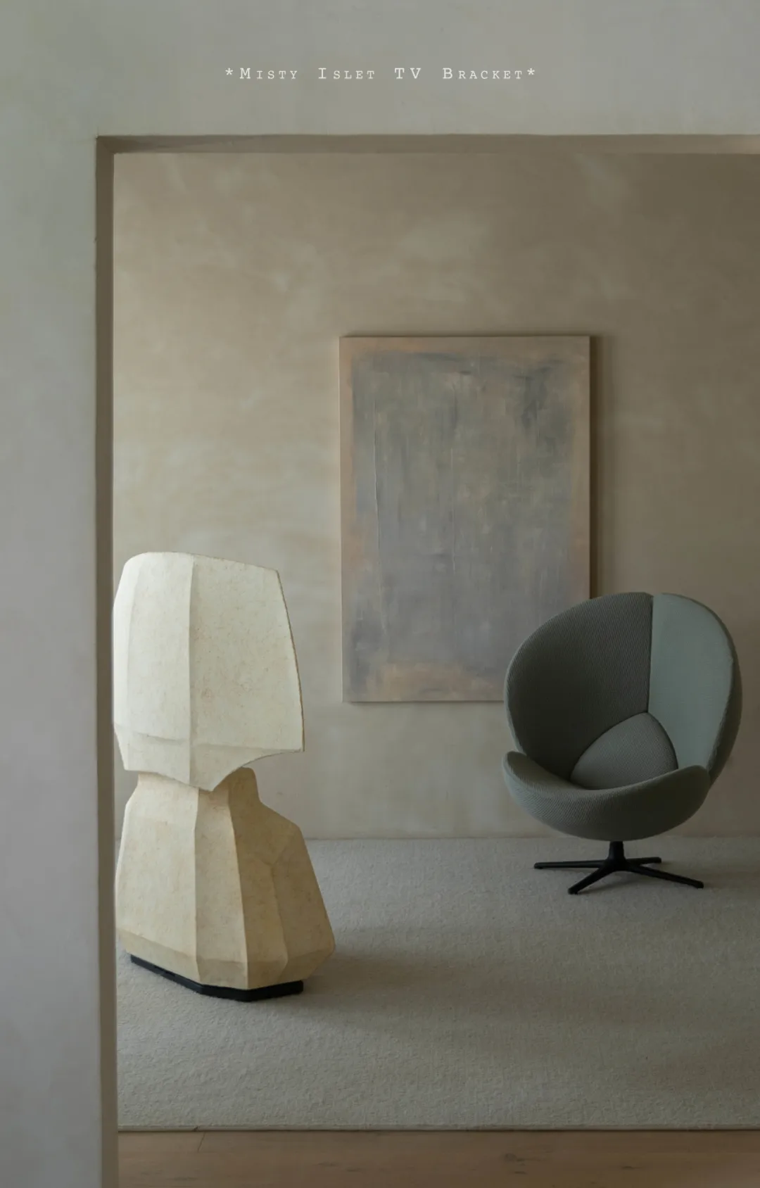 雾屿电视机支架以极简的线条重新定义了影音家具。其独特的波浪形背板设计,让电视屏幕的光影在墙面上产生如海浪般柔和的反射。支架内部集成了智能理线系统,所有线材均可隐藏于支架内部,保持空间的整洁与秩序。