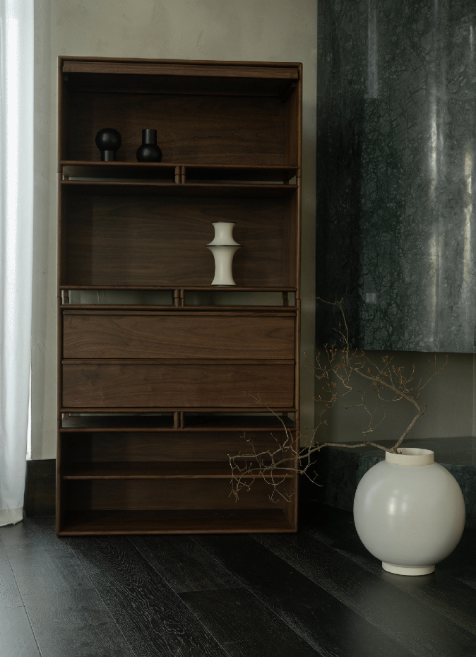 集木模块组合柜则提供了更为灵活的收纳解决方案。每个柜体均为独立模块,用户可根据空间大小和收纳需求自由组合。柜门采用隐藏式轨道,开合顺滑无声,内部空间可根据衣物、书籍或收藏品的不同尺寸进行灵活调整。