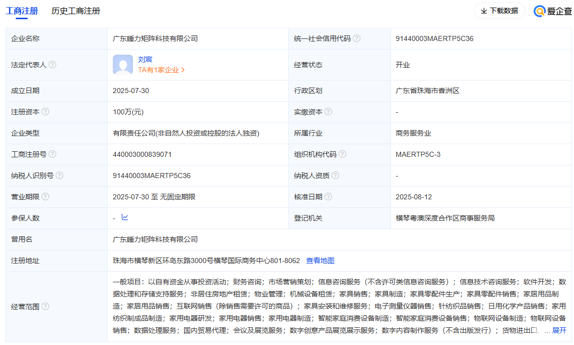 10月10日,智能睡眠领域传来新动态。成立于今年7月30日的广东睡力矩阵科技有限公司(简称“睡力矩阵”)宣布完成天使轮融资,本轮投资由追创创投独家完成。这家从成立到获得首轮融资仅用时两个多月的初创企业,正以技术创新者的姿态切入智能睡眠市场。