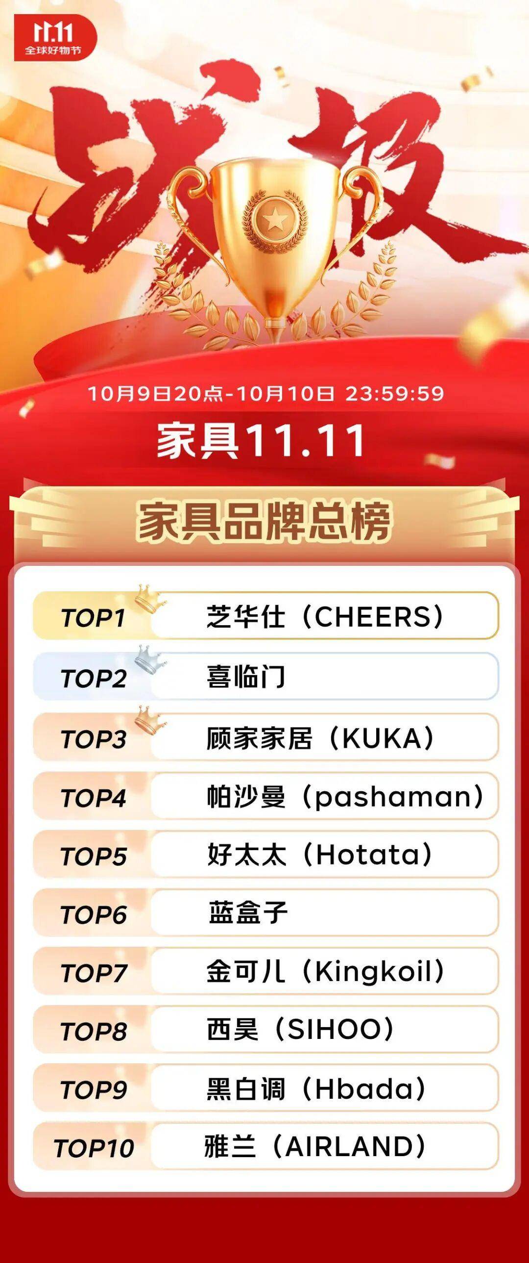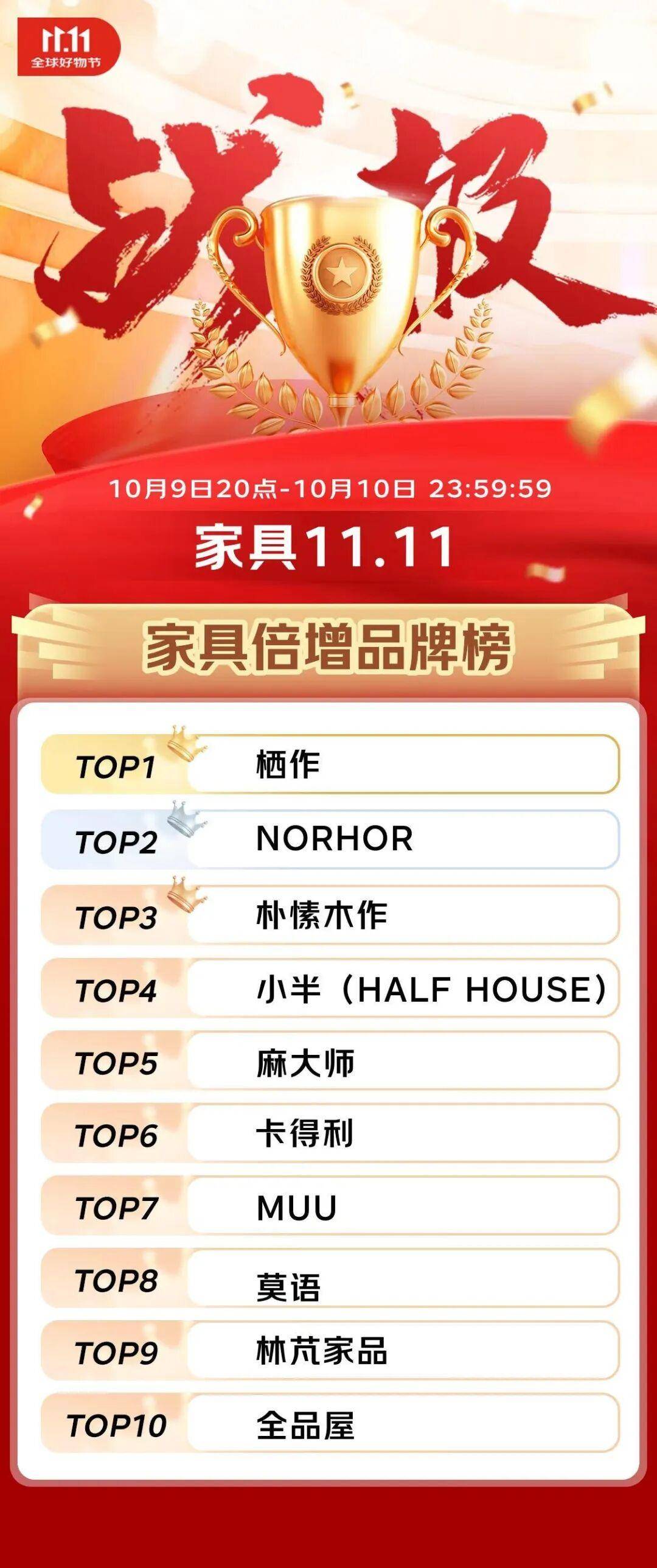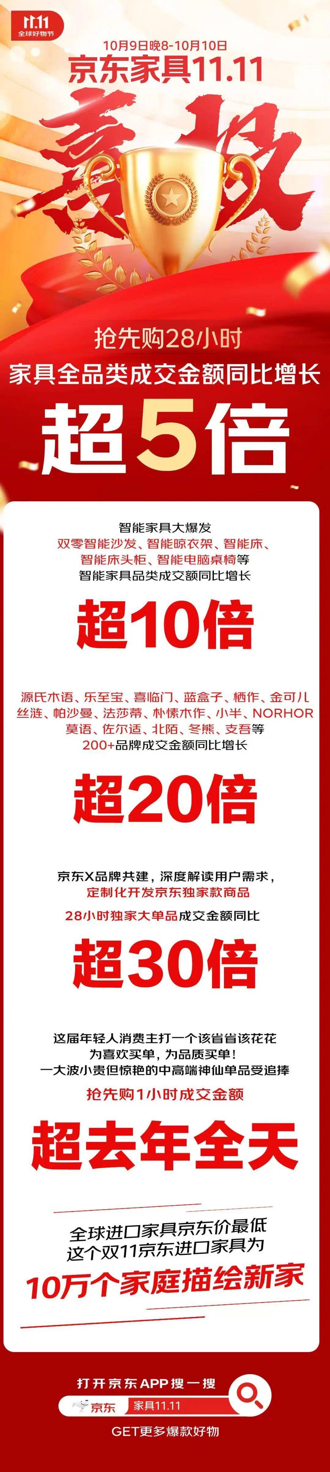京东11.11家具开门红:200品牌增长超20倍,首轮榜单出炉!
