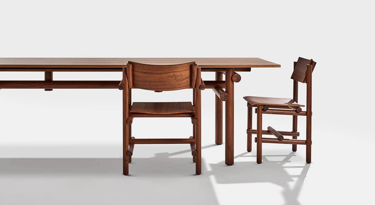这是穆克与 Knoll 的首次商业合作。他将艺术实践的核心理念融入设计,打造出一套全木材质的餐桌椅系列,既保留了厨房桌椅的亲切感,又延续了他标志性的极简美学。穆克解释道:“我喜欢事物本真的样子,而非试图揣测他人赋予它们的意图。最终,它们是包容而慷慨的存在。”