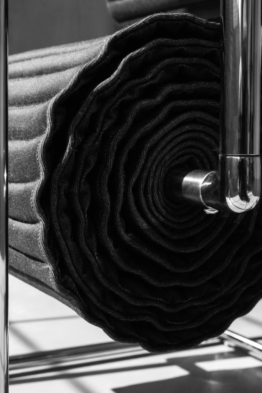 G-Star Raw近日与纽约设计师Caroline Chao合作,推出名为“The Roll-Up Chair”的概念性模块化座椅,作为品牌“Art of Raw”美学计划的一部分。该座椅以滞销库存牛仔布和工业副产品为材料,融合钢栏杆配件、建筑紧固件以及复古四合扣等元素,呼应G-Star的牛仔工艺传承。