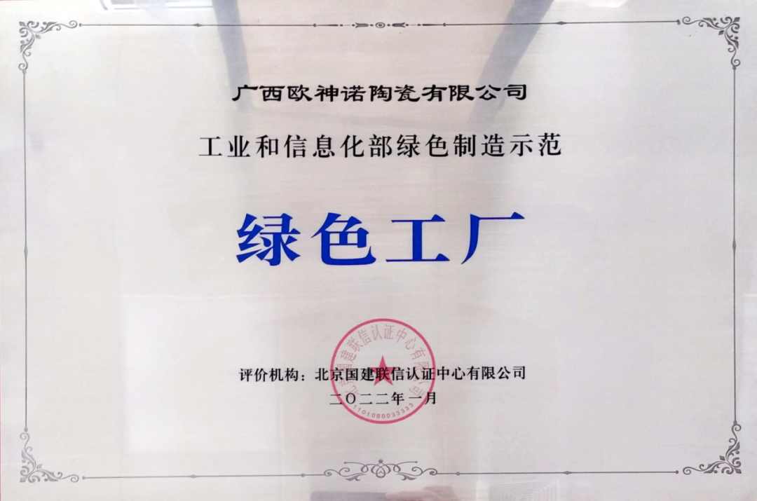 欧神诺在广东佛山、广西梧州、江西景德镇拥有3大智造工厂,3000多亩的现代化生产基地,以及行业先进的生产设备,在智能化生产、数字化管理及各项指标上均达到国际领先水平。与此同时,欧神诺还获评"国家级绿色工厂",产品通过绿色低碳陶瓷砖认证,实现“5A品质+绿色生产”的双赢。
