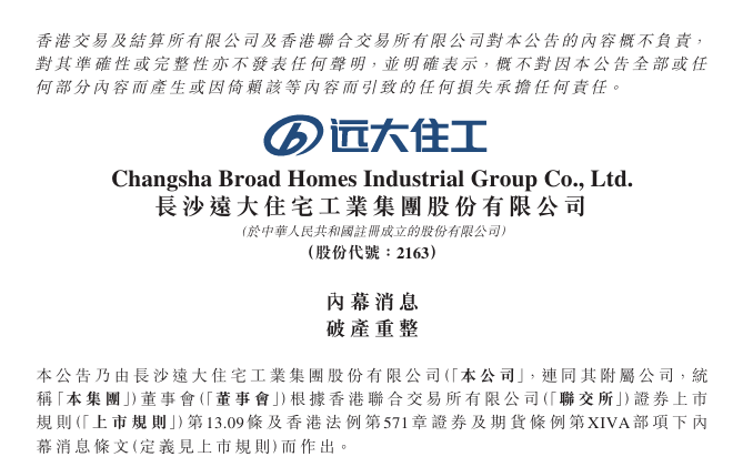 公告中指出,近年来受宏观经济环境、地产行业深度调控及前期疫情等多重因素影响,公司虽已采取多项自救措施,但收效不彰,导致各类风险全面暴露且持续加剧。根据《中华人民共和国企业破产法》相关规定,远大住工坦言自身已无法清偿到期债务且明显缺乏清偿能力,因而符合破产重整的法定条件。