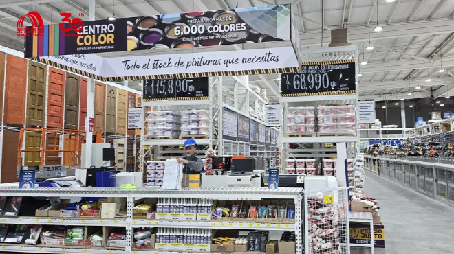 此次San Pedro新店在产品陈列与客户体验方面实现全面升级。店内布局科学有序,系统展示Construmart品牌旗下广受认可的建材与装饰产品,满足不同客户的多元需求。专业销售与技术团队现场提供咨询支持,以“产品+服务”模式提升用户体验与品牌价值。