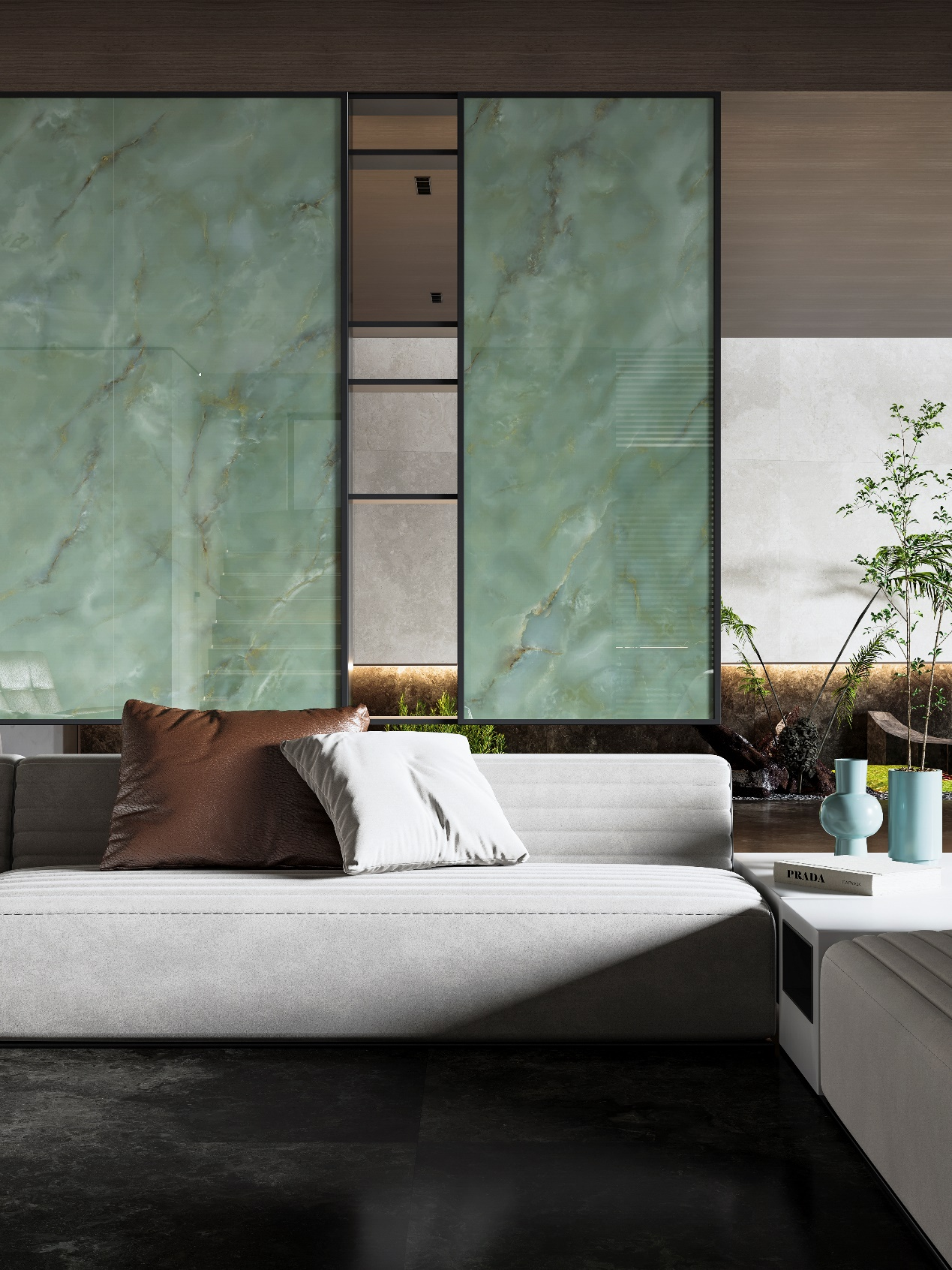 十余款新品花色各异、高贵典雅,色调高级且极具辨识度,为空间提供富有生命力的视觉韵律;延续玉石材料的天然质感,温润通透、柔和内敛、触感细腻,打造出静奢风的高级感、永恒感和舒适感,为大宅应用和设计师选材带来更多可能性。