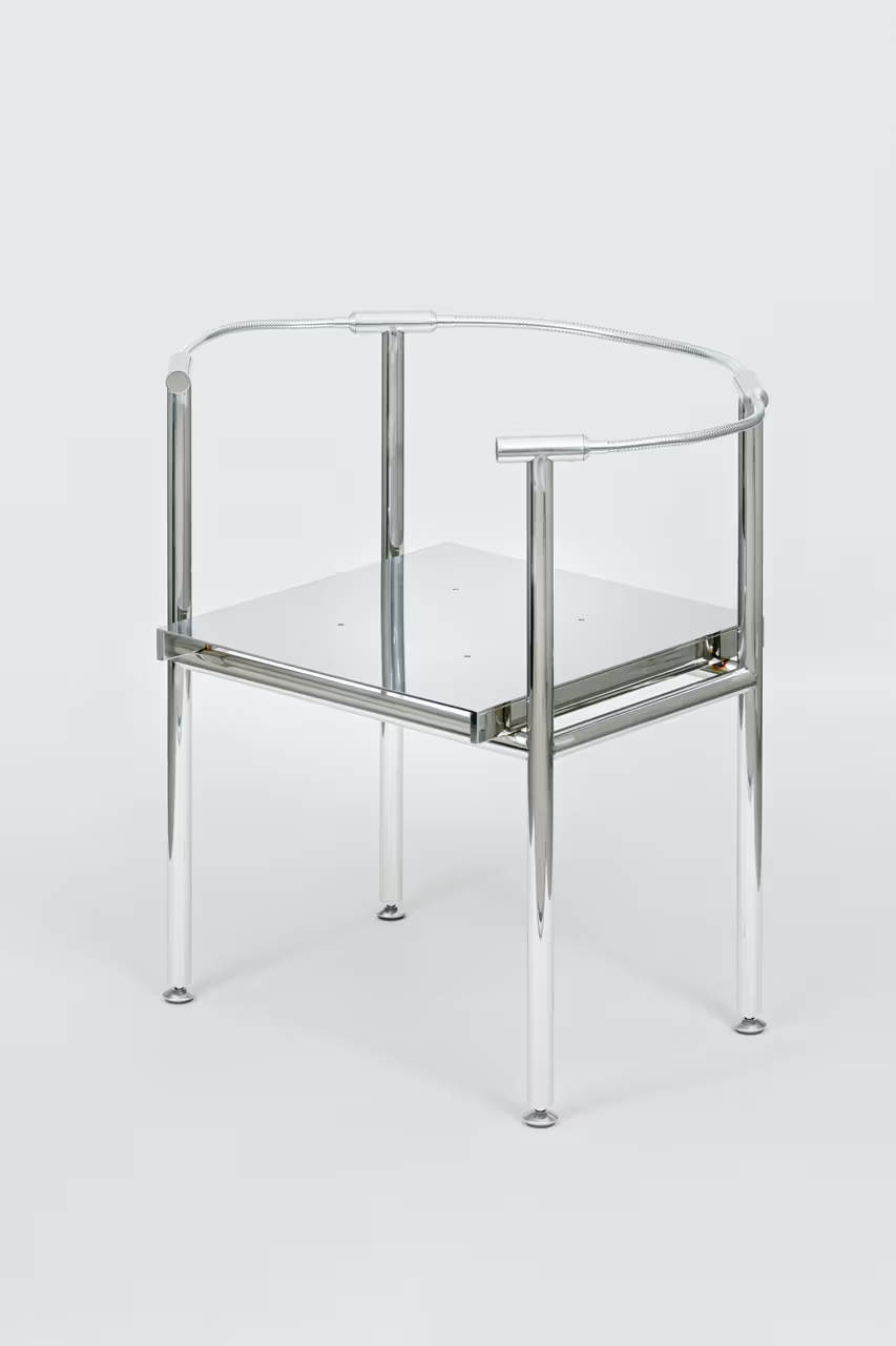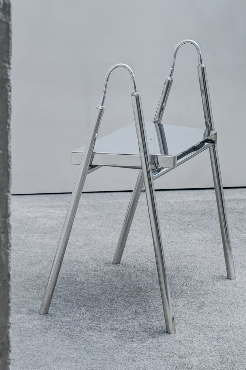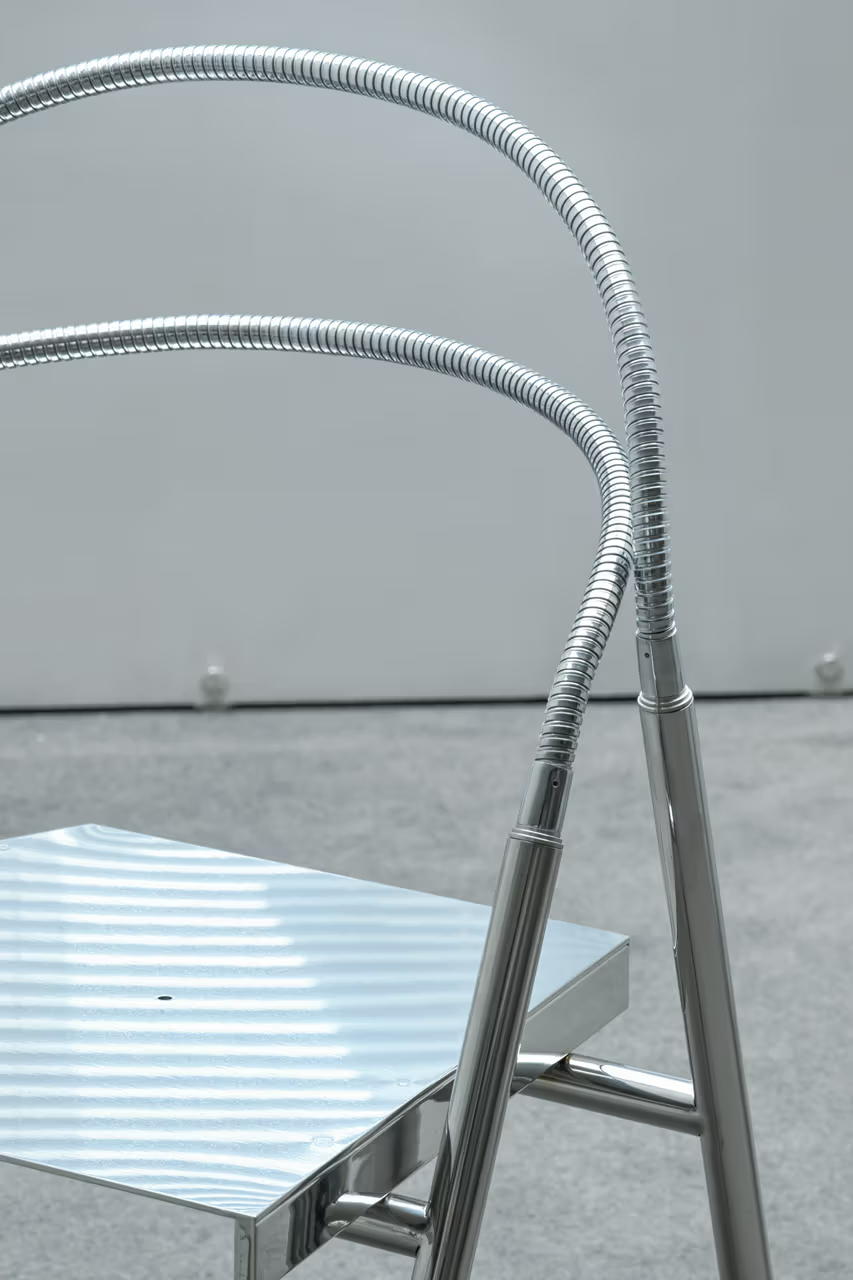 展览核心的“de-goose”计划,正是要打破人们对鹅颈管的传统认知。Woojin Park敏锐地捕捉到这种材料既能灵活弯曲又能稳固支撑的双重特性,并将其创造性地运用于家具设计。最具代表性的de-goose chair 1,将鹅颈管作为椅背的主要结构,当使用者坐下或变换姿势时,椅背会实时响应,主动贴合背部曲线,让静态的家具变成了能与人体对话的动态伙伴。