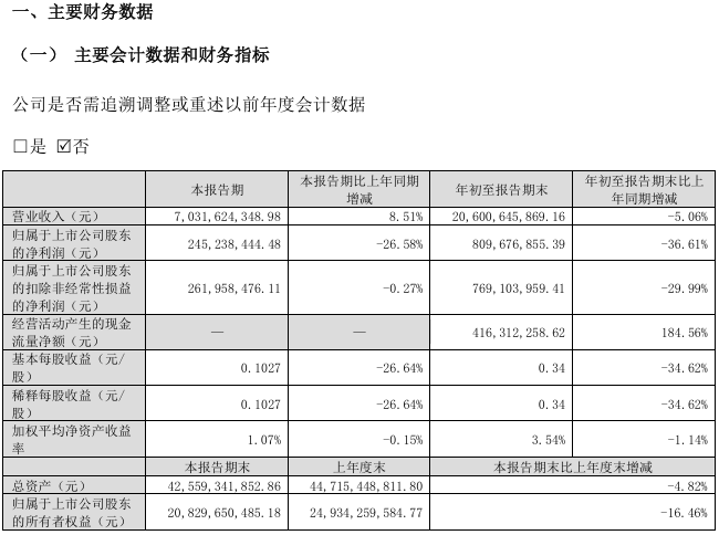 然而细看第三季度单季表现,70.32亿元的营收实现了8.51%的同比增长,透露出业务回暖的积极信号。不过单季2.45亿元的净利润仍处于26.58%的同比下降通道,显示公司盈利能力尚未完全恢复。