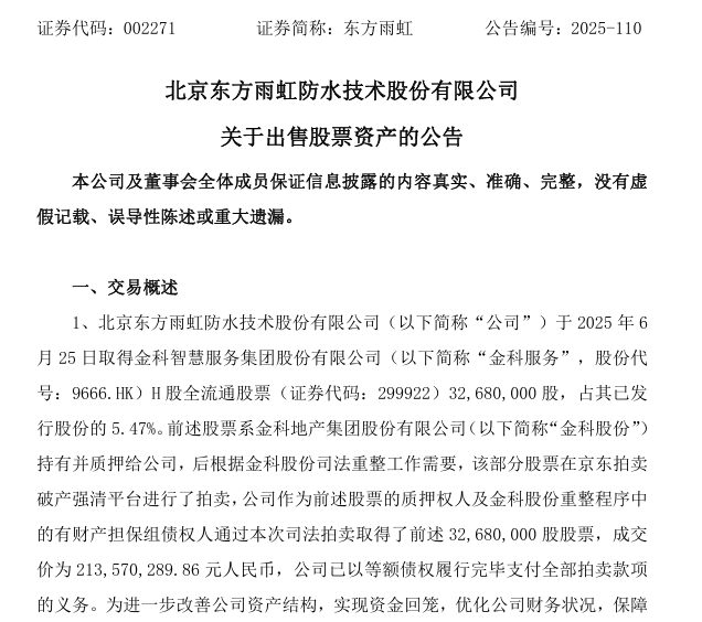 这一系列动作勾勒出东方雨虹在当前市场环境下的应对策略:通过加速债权清收、盘活存量资产来优化财务状况,提升资金周转效率。从接收绿地集团的抵房资产,到出售自有不动产和金科服务股权,公司正多管齐下改善现金流。