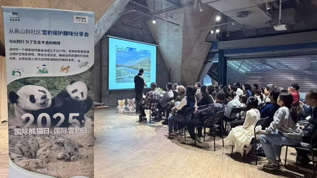 舒达支持了一个地球自然基金会在大熊猫栖息地保护方面的持续努力,而我们也呼吁像“守护大熊猫一样守护雪豹”。2025年10月25日,一个地球携手合作伙伴于成都春熙路太古里方所,举办“从高山到社区”雪豹保护趣味分享会,特邀北京大学动物学博士刘炎林、雪豹公益摄影师骆晓耘、祁连山雪豹巡护员王亮三位嘉宾,现场讲述雪豹的生存故事。他们借助文字与影像,向我们传递一个深刻的讯息:我们守护的,是雪豹的栖息地,亦是人类生存的基石。