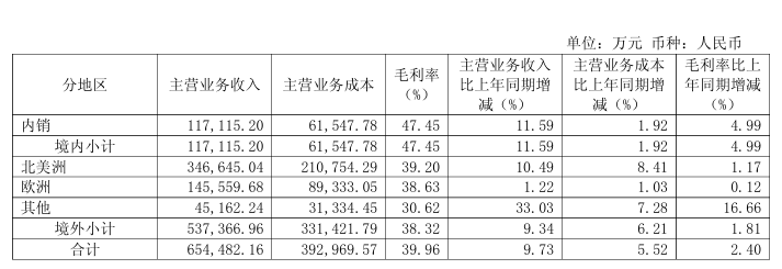 自主品牌内销数据显示,梦百合品牌在国内市场保持良好发展态势。线上销售继续高增长,营收同比增长27.12%;直营店营收增长9.7%;虽然酒店业务受市场环境影响下滑17.75%,但新业务增长34.36%,展现出多元化布局的成效。自主品牌内销整体毛利率达52.23%,较上年同期提升6.33个百分点,显示出品牌溢价能力的提升。