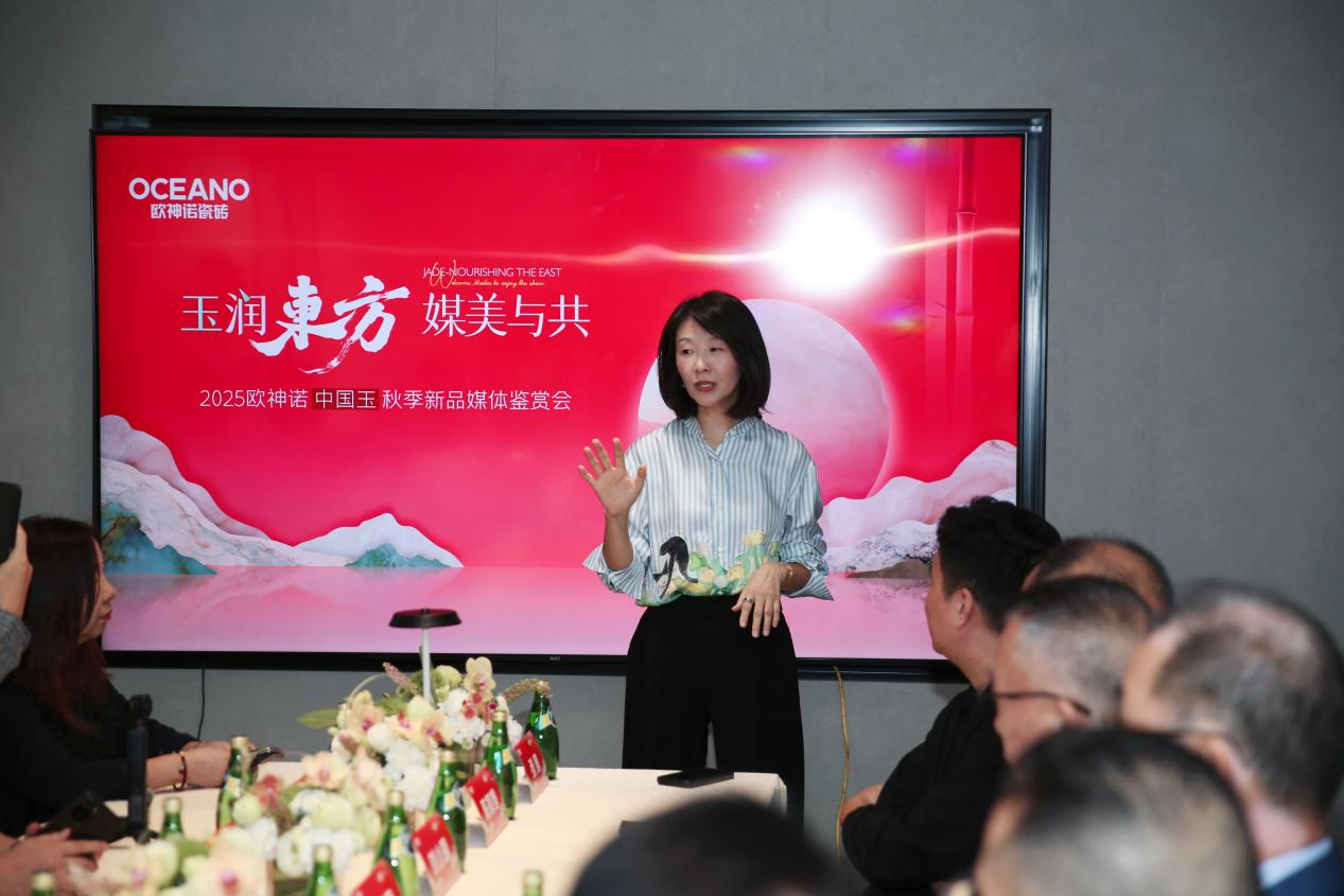 欧神诺品牌运营管理中心总经理张鸥在现场分享了“中国玉”三代产品的设计理念。她指出,此次新品不仅将玉石从材质升华为文化符号,更注重材料质感带来的情绪价值与东方美学提供的精神共鸣,旨在为高端人居提供全新选择,引领东方静奢生活方式。