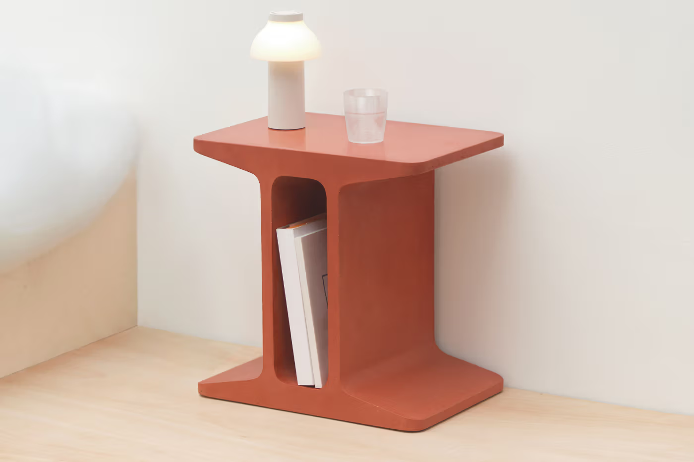 这款边几在英国通过手工浇铸的耐候混凝土制成,其设计灵感来源于工字梁的结构效率,醒目的轮廓与中央留空的处理既形成了强烈的视觉符号,也创造了可收纳书本、笔记本电脑甚至柴火的实用空间。