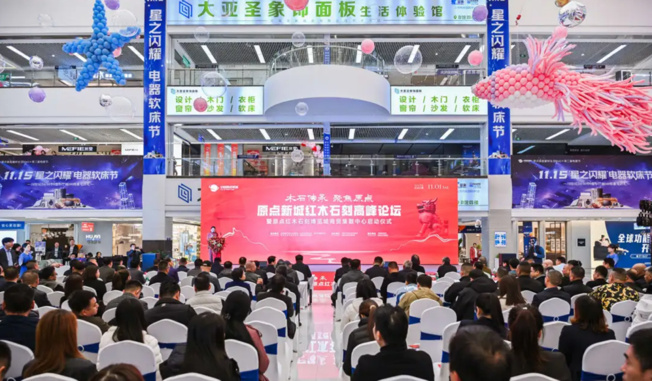 11月1日,原点新城红木石刻高峰论坛暨原点红木石刻博览城商贸集散中心启动仪式在中国原点新城隆重举行。本次活动以“木石传承·聚焦原点”为主题,汇聚政、企、学、商界嘉宾、行业精英、石雕收藏家及原点新城商户代表等,奏响了原点新城红木石刻产业融合创新发展的时代强音。活动不仅标志着西北首个红木石刻专业商贸集散平台正式启航,更是落实推动产业上下游生态融合发展,建设全国统一大市场等国家战略的创新实践。
