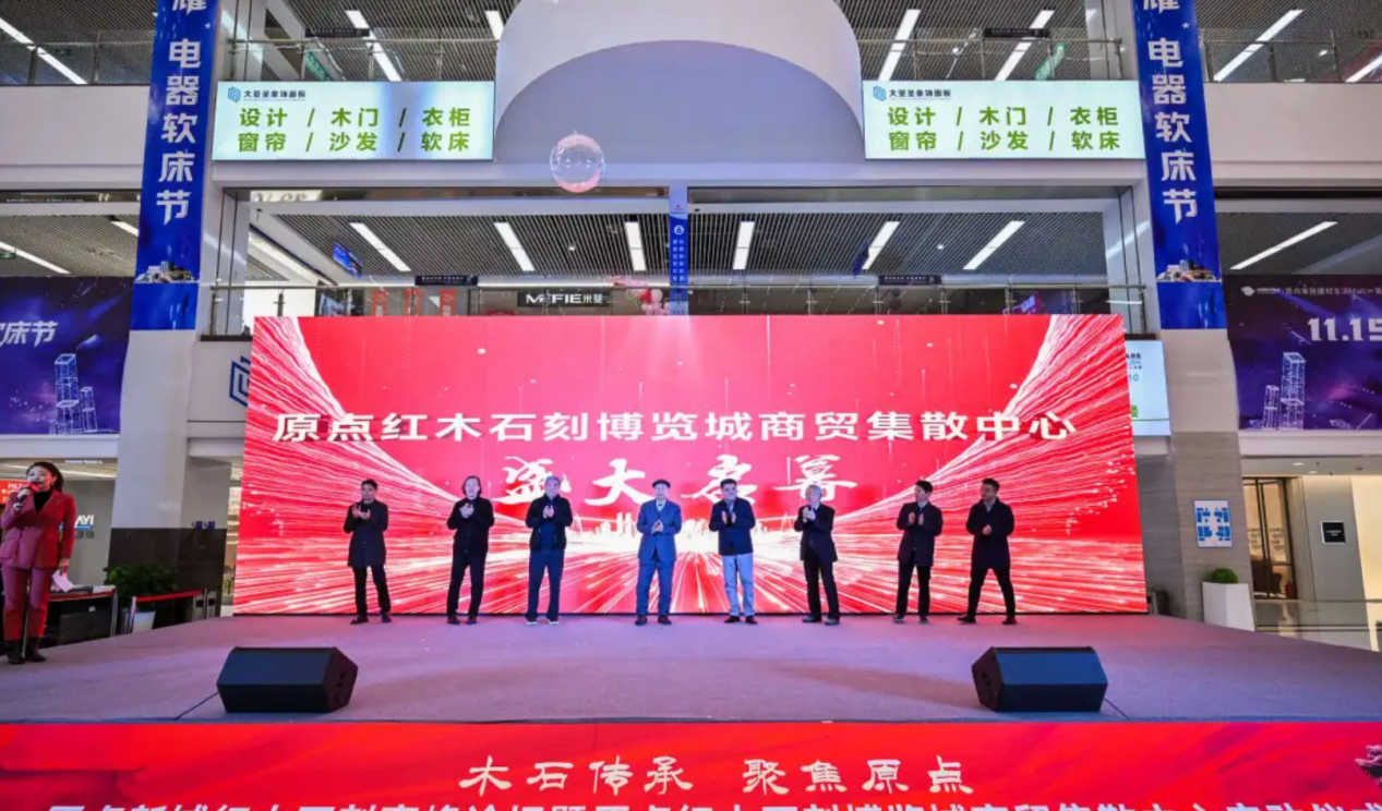 原点红木石刻博览城商贸集散中心的正式启动,为木石文化融合发展搭建起全新生态平台。随着参会领导嘉宾共同登台启动,这个集展示交易、文化体验、物流配套于一体的商贸集散中心正式揭开面纱。