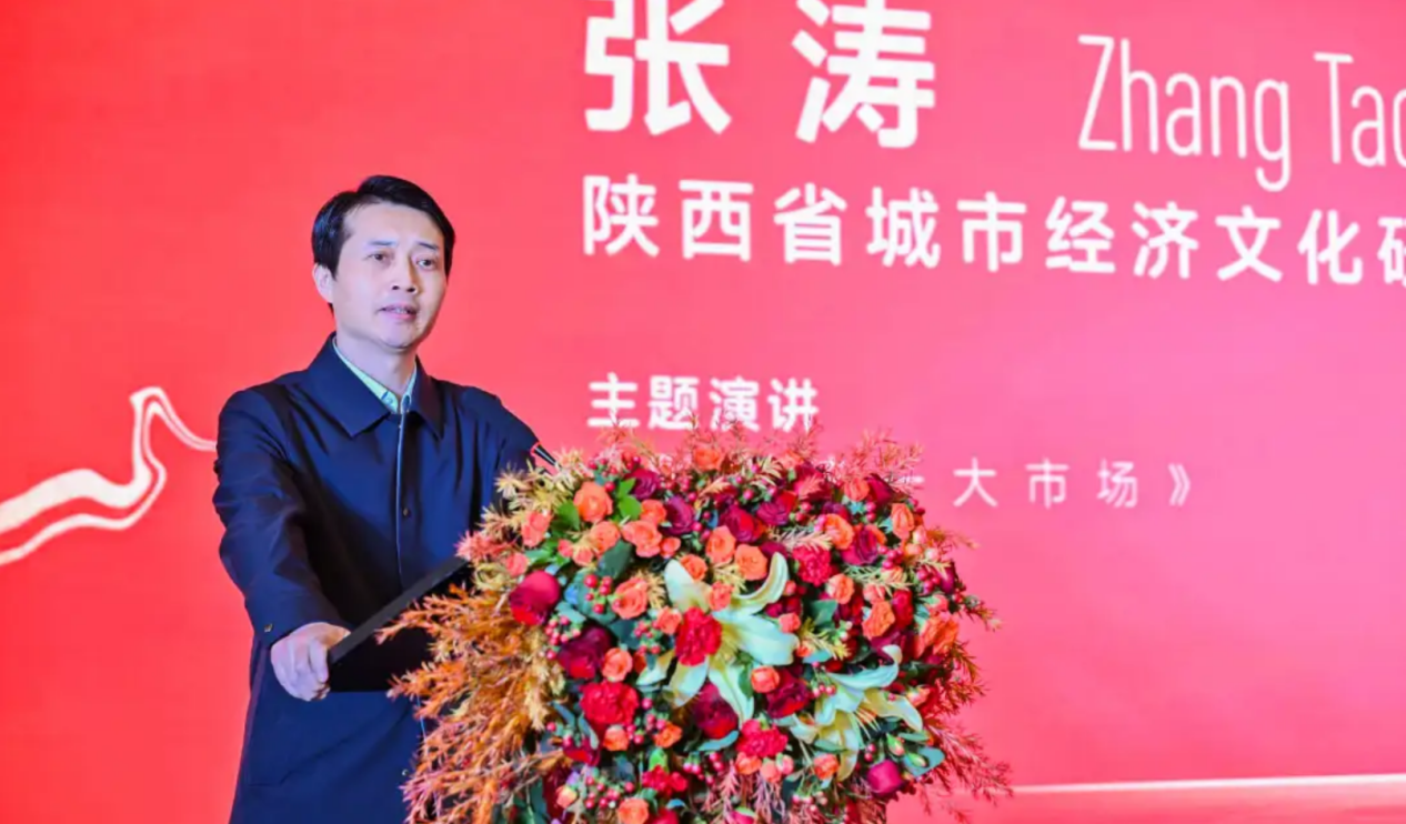 红木的温润与石刻的厚重,在本次活动中实现了文化层面的深度对话。陕西省城市经济文化研究会会长张涛在《国家统一大市场》主题演讲中指出,该集散中心的落地恰逢其时,积极响应了国家统一大市场建设号召,并且提出通过“统一基础设施、统一市场制度、统一政府政策、统一市场监管、统一市场主体”五大举措,推动国内国际双循环,深化市场发展战略;他强调,凭借文化赋能,该集散中心定能深度融入全国统一大市场,实现更高质量的发展。