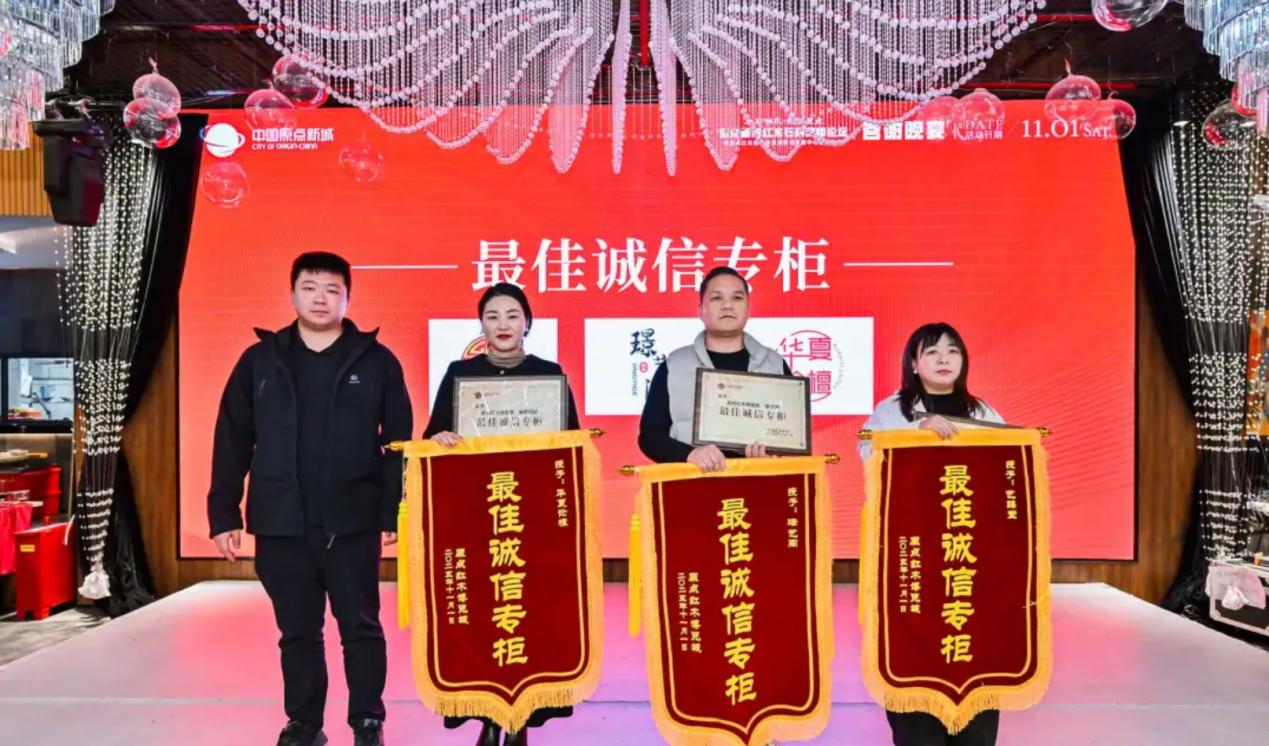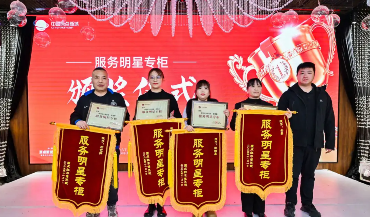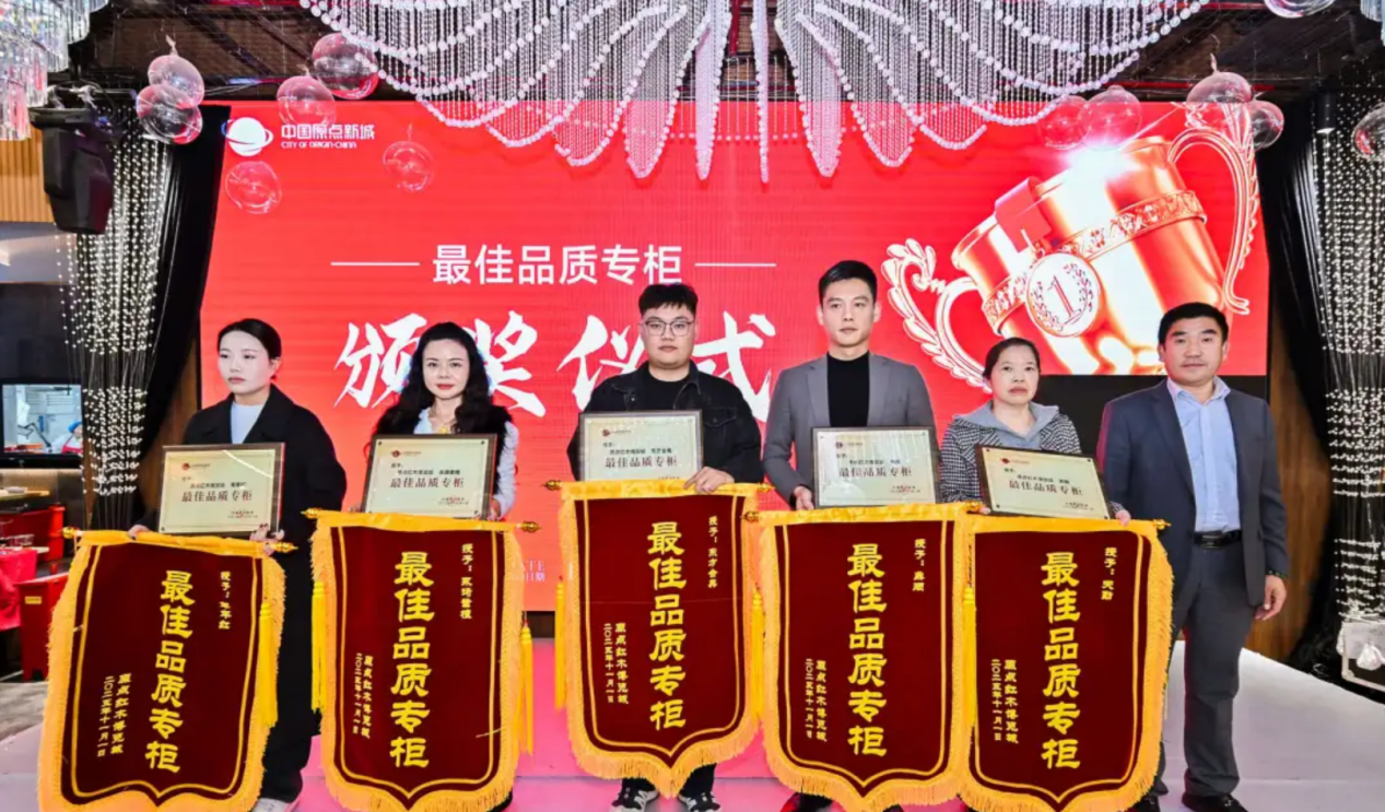 在本次答谢晚宴的温情氛围中,原点红木博览城特别为入驻满5年的杰出商户进行表彰。五载相伴,这些商户不仅是市场成长的见证者,更是经营攻坚的实干者与文化传承的践行者。他们分别是“最佳诚信专柜”、“服务明星专柜”、“创新营销专柜”、“最佳品质专柜”、“杰出贡献专柜”。未来,原点红木博览城将持续优化服务体系,完善配套设施,与商户携手打造红木石刻产业“诚信高地”和“品质标杆”。