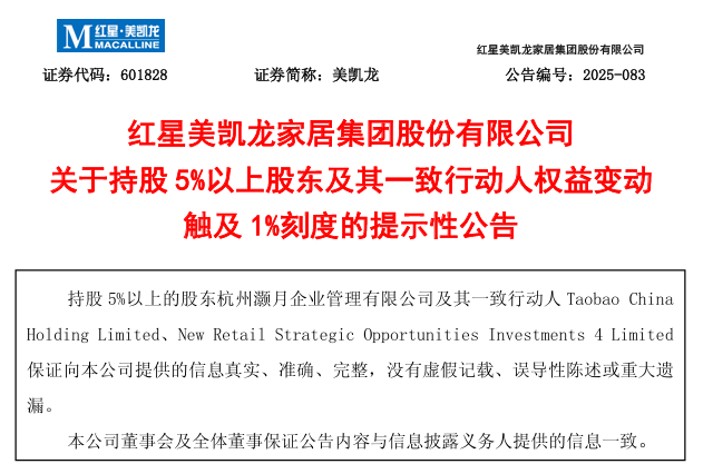 作为家居零售行业的龙头企业,红星美凯龙近期正经历股东结构的持续调整。在当前的行业环境下,主要股东的持股变动备受市场关注。此次权益变动后,市场将密切关注阿里巴巴系股东后续的持股动向及其对公司长期发展的影响。