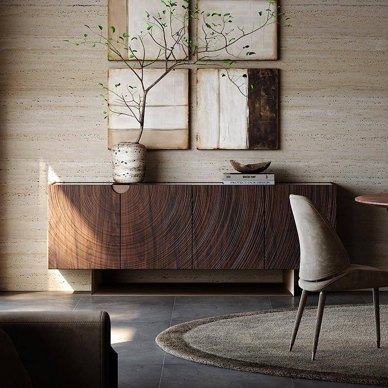 在风格定位上,VISN并未盲目追随“老钱风”或“中古风”的潮流表象,而是回归设计的本质——如何在古典与现代之间找到平衡。艺术雕刻柜既保留了天然材质的肌理与温度,又以现代手法演绎经典,不过分繁复,也不流于寡淡,真正契合当代消费者对“有温度的精致生活”的期待。