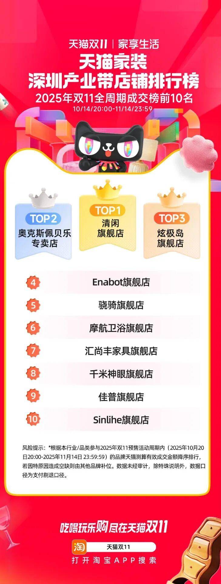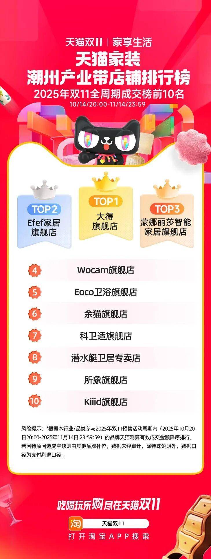 产业带商家在本届双11中同样展现出强劲活力。天猫家装发布的佛山、深圳、徐州、中山、温州、金华、苏州、赣州、潮州九大核心产业带店铺排行榜,反映出中国家居制造业的区域布局与发展动能。为深化与产业带的联结,天猫家装于10月启动“产业带智汇联盟”计划,通过精准定位运营痛点、整合平台资源与数据能力,为商家提供新政策优先触达、产品优先使用、技术支持等多维度权益,共同探寻增长突破点。