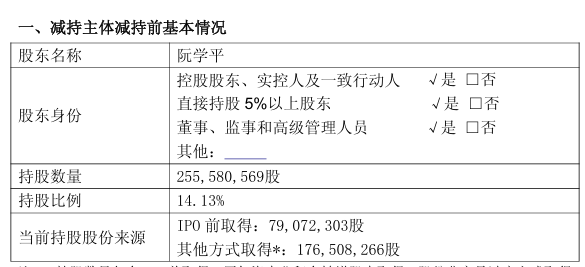 此次减持理由是阮学平的“自身资金需求”。
