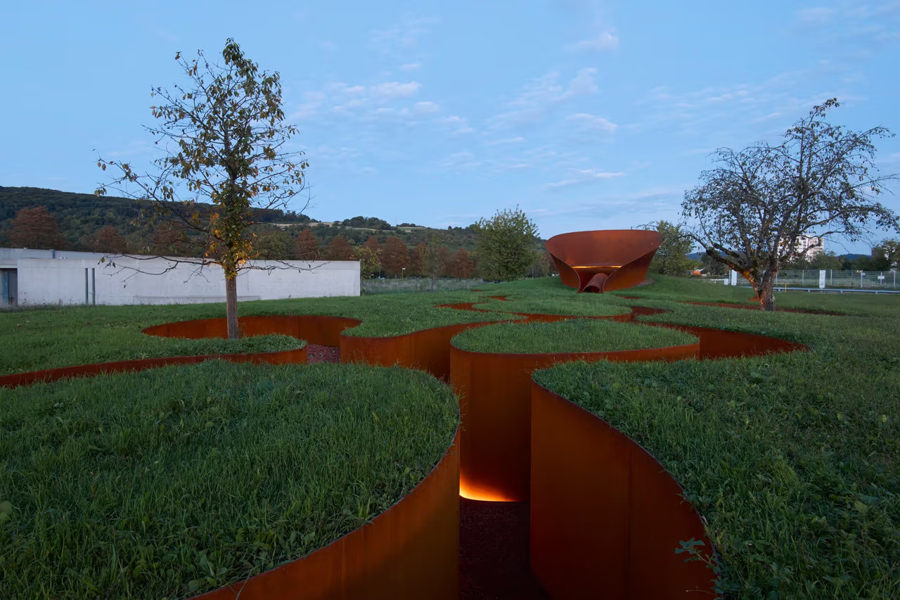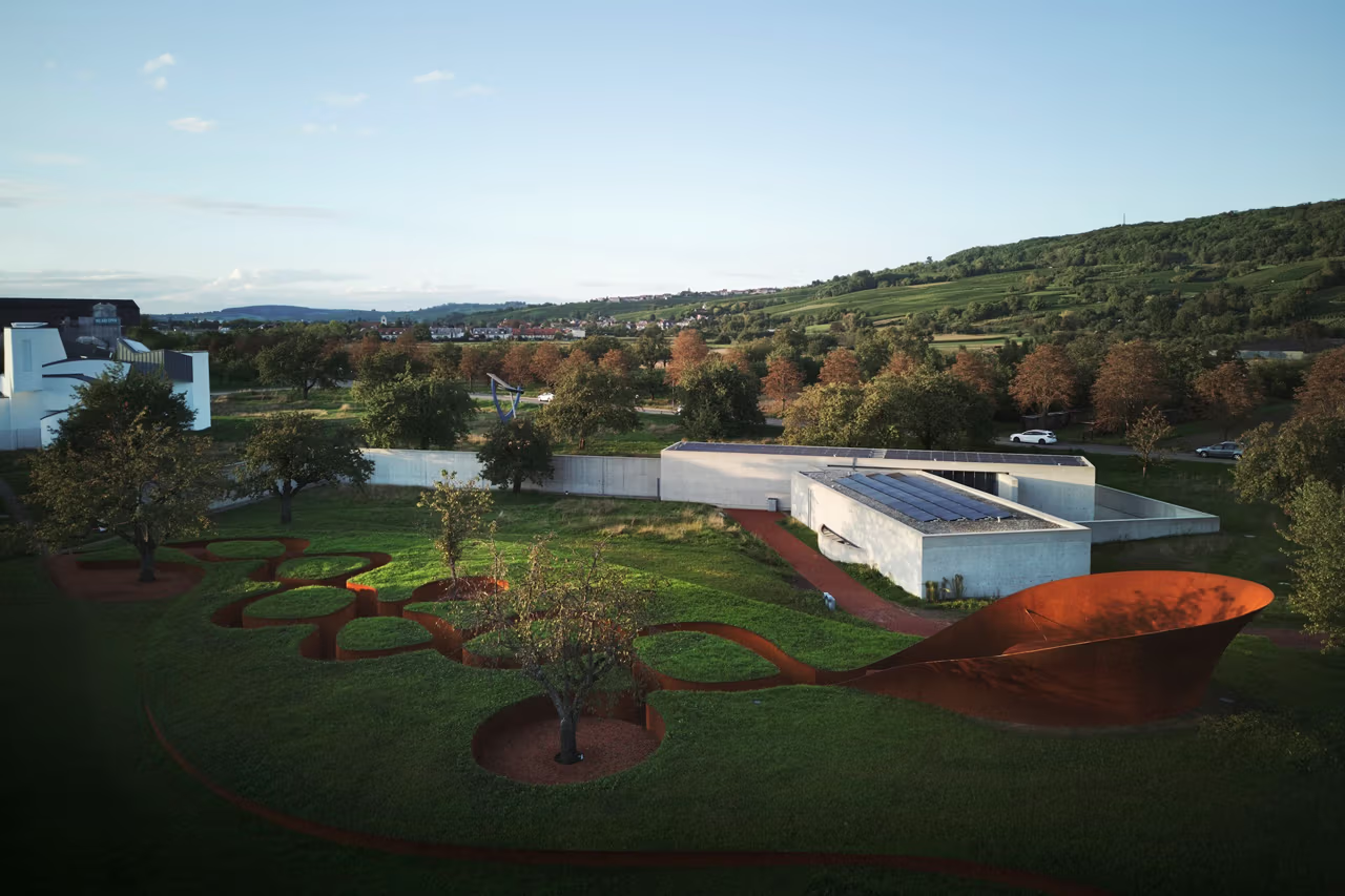 位于德国Weil am Rhein的Vitra Campus,数十年来已成为全球设计与建筑爱好者的朝圣地,不仅因其标志性建筑群与经典藏品,也因其开阔的园林氛围而备受喜爱。基于这一特质,并在参观印度莫德拉太阳神庙后受到启发,Vitra董事长Rolf Fehlbaum邀请Doshi设计一处能唤起灵性体验的场所。