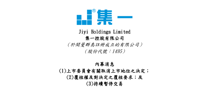 11月18日,集一控股公告宣布,于2025年11月7日收到香港联合交易所的函件,函件指出联交所上市委员会已决议根据上市规则取消其股份的上市地位。