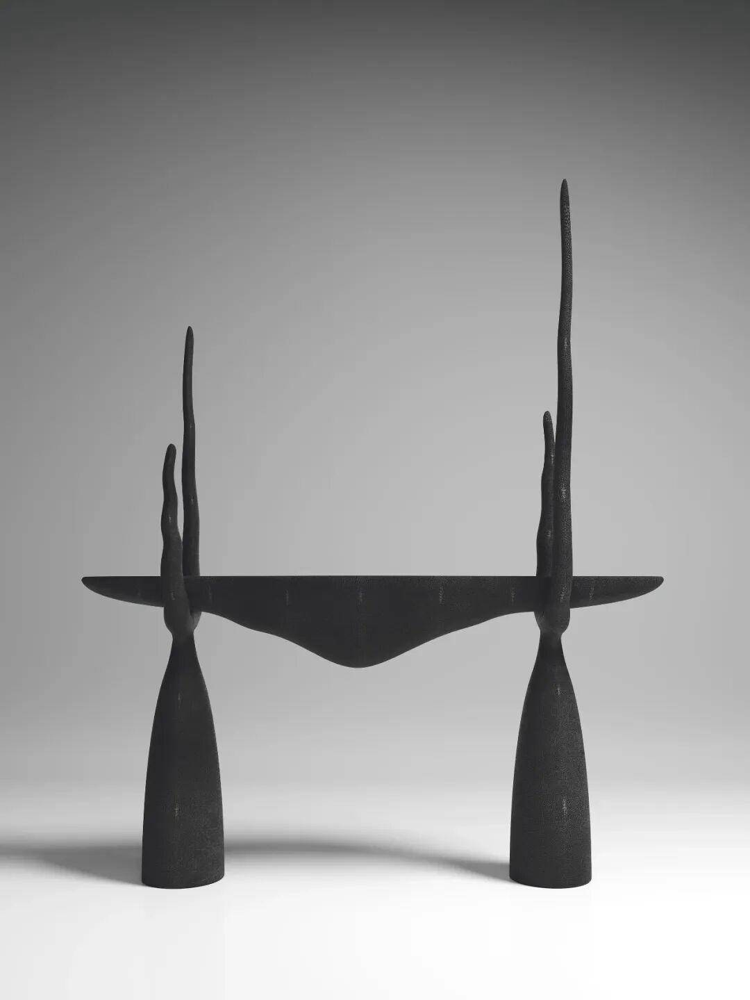 Sylvie Console玄关桌以黑色哑光树脂塑造出如同抽象雕塑的造型,不规则的桌沿与高耸的支撑柱仿佛从自然中生长而出,顶部的玻璃台面则为整体注入现代感,实现艺术与实用的平衡。摆放在家中入口处,它既能收纳钥匙、饰品,更能瞬间提升空间的艺术格调。