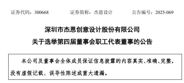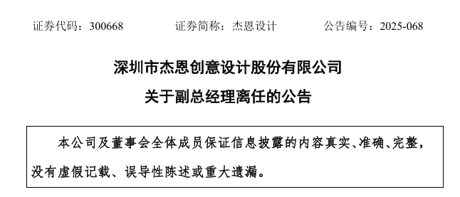 11月24日,深圳市杰恩创意设计股份有限公司(以下简称“杰恩设计”)接连发布多份公告,披露了公司管理层与治理结构的一系列重要变动。
