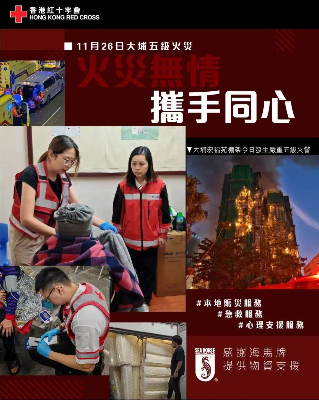 2025年11月26日下午,香港大埔区宏福苑发生火灾,造成部分市民受灾。在得知灾情后,SEA HORSE海马牌于傍晚6时接到香港红十字会与EmpowerHer Network督导委员会成员邬翁嘉穗女士的支援协调通知,随即启动应急响应机制。