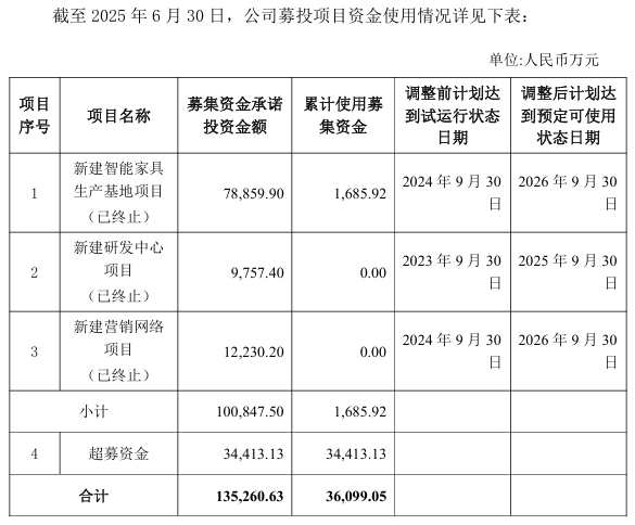 值得注意的是,匠心家居此前募集资金净额为135,260.63万元,今年4-5月经股东大会审议终止了包括“新建智能家具生产基地项目”在内的三个原募投项目。截至2025年6月30日,公司募集资金余额为10.92亿元(含利息收入),其中10.84亿元用于现金管理。本次柬埔寨项目投资额占公司首次公开发行募集资金净额的11.12%。
