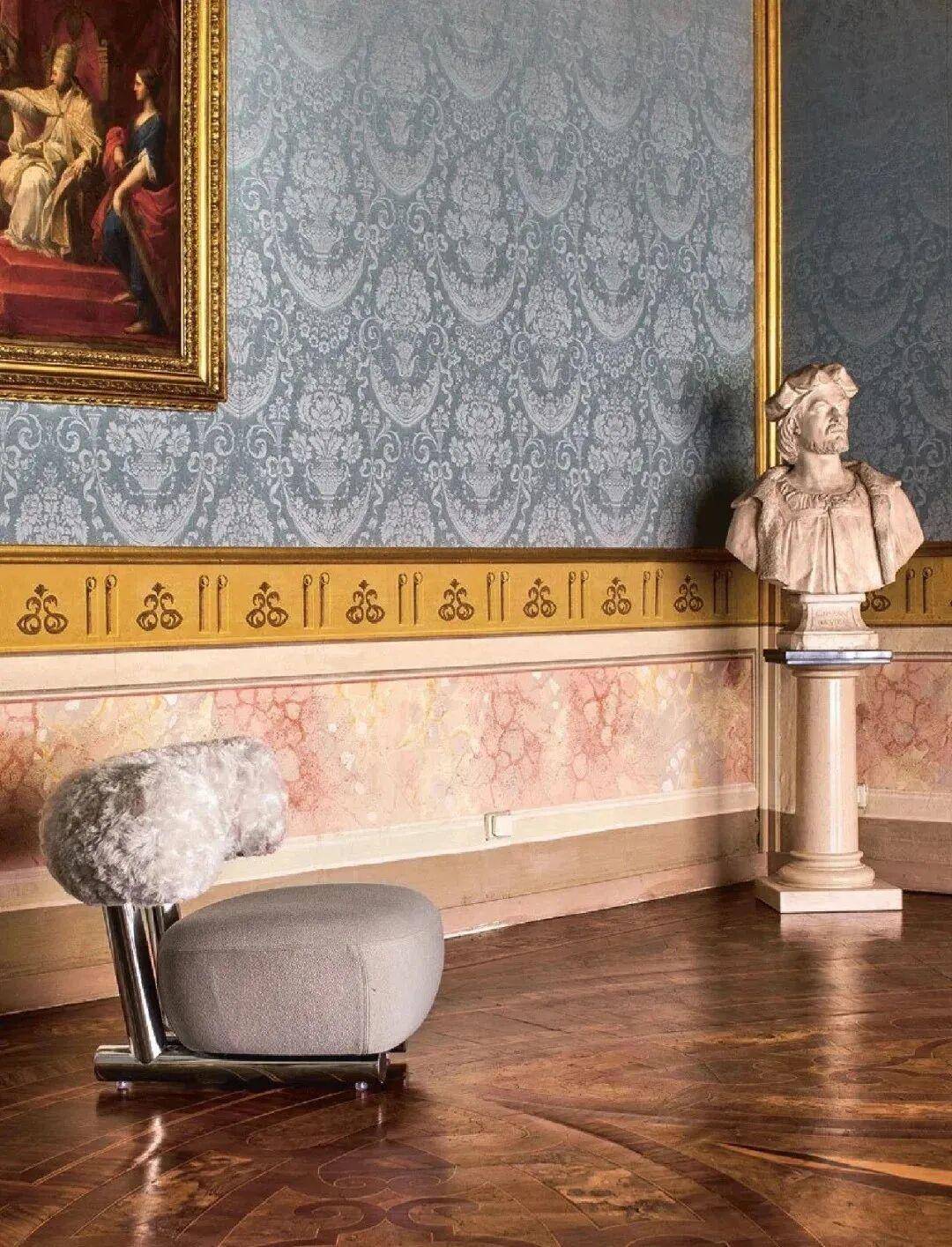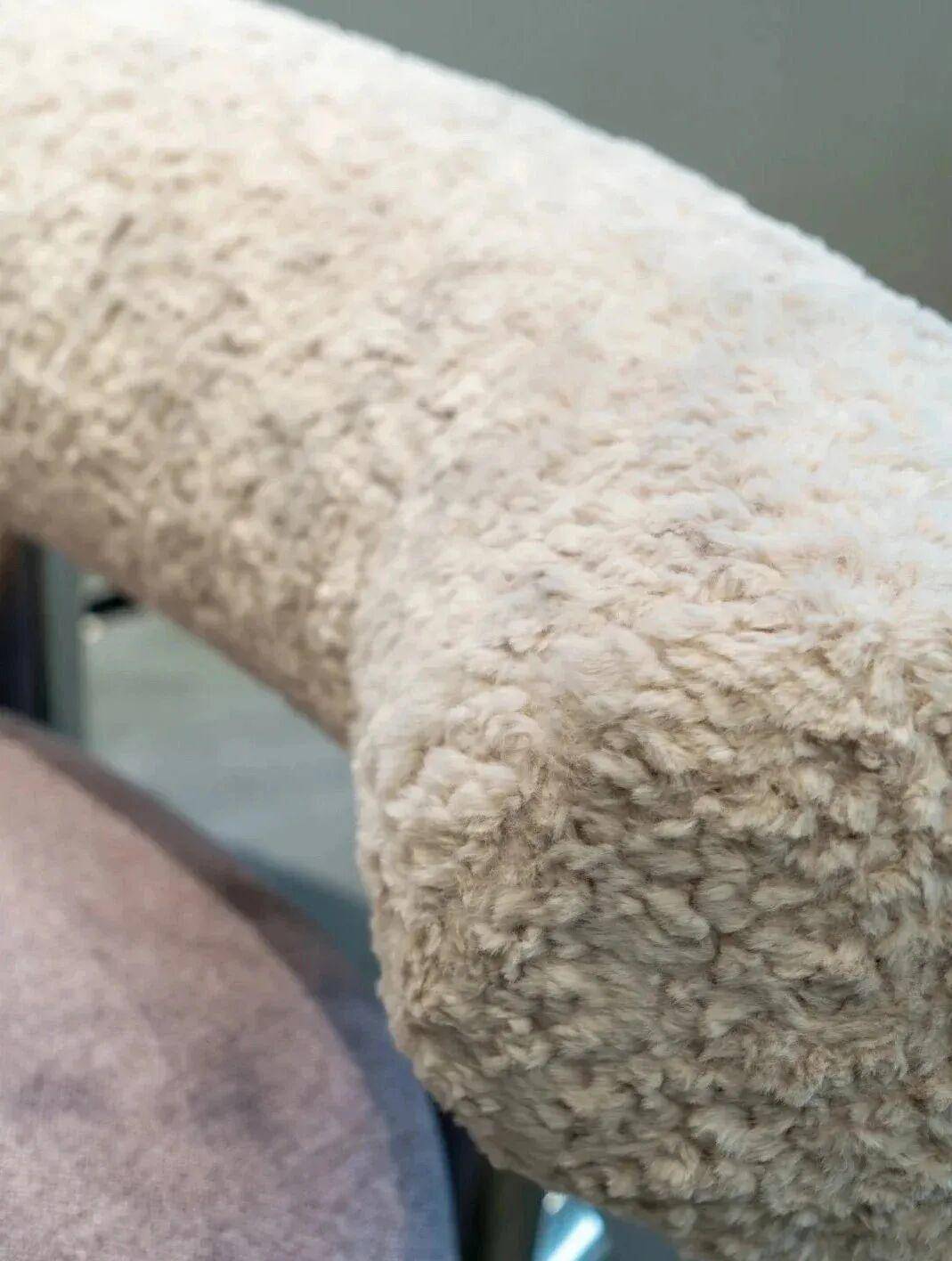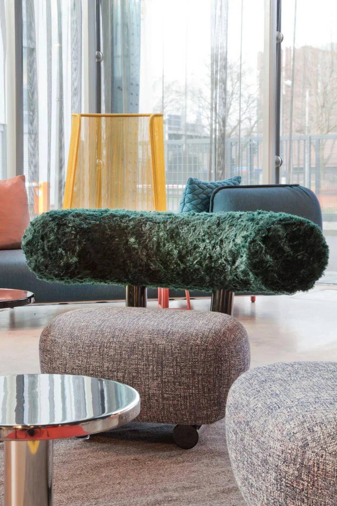 冷硬利落的金属框架与柔软温暖的坐垫面料形成鲜明对比,在刚柔并济间达到巧妙平衡。这条曲线不仅构成了比许多直腿椅更稳固的支撑框架,更让使用者能够单手轻松拖移椅子——正是这种如同拖拽雪橇般的便利性,赋予了它“雪橇椅”的昵称。从任何角度观赏,它都呈现360度无死角的优雅形态,宛如一件动态雕塑。