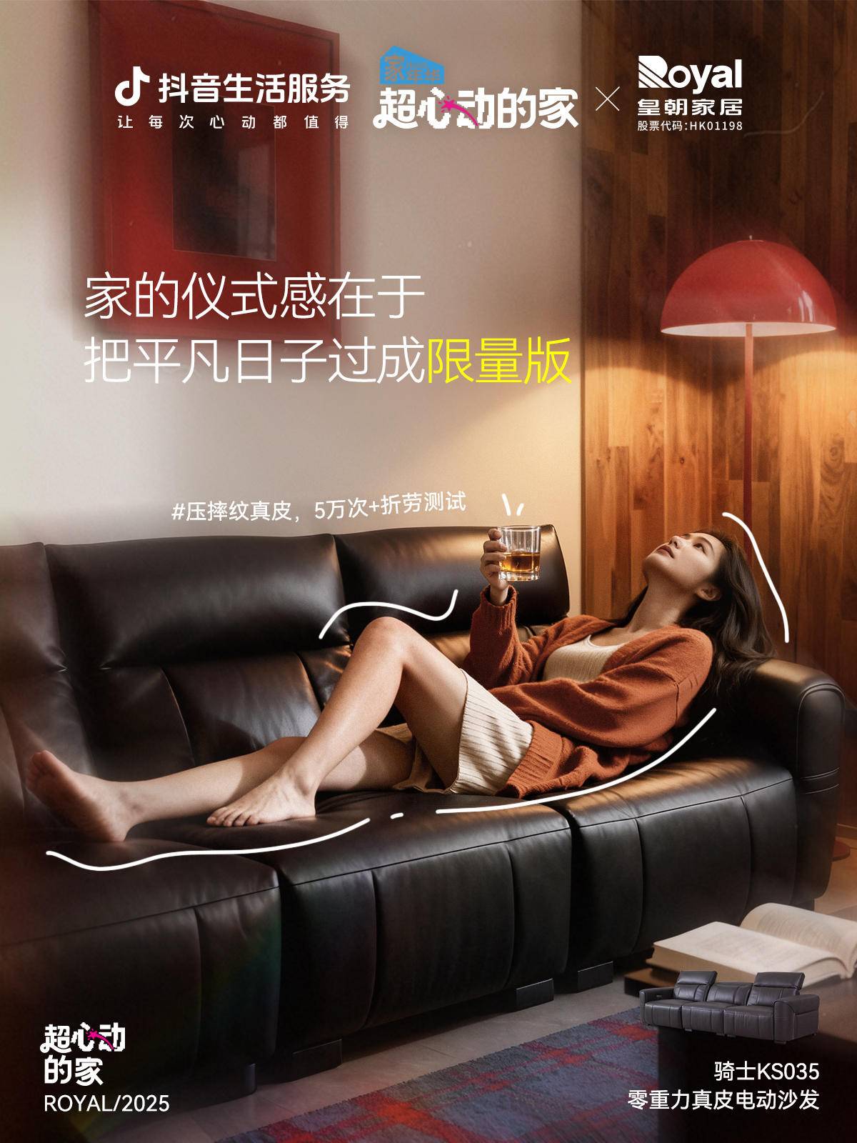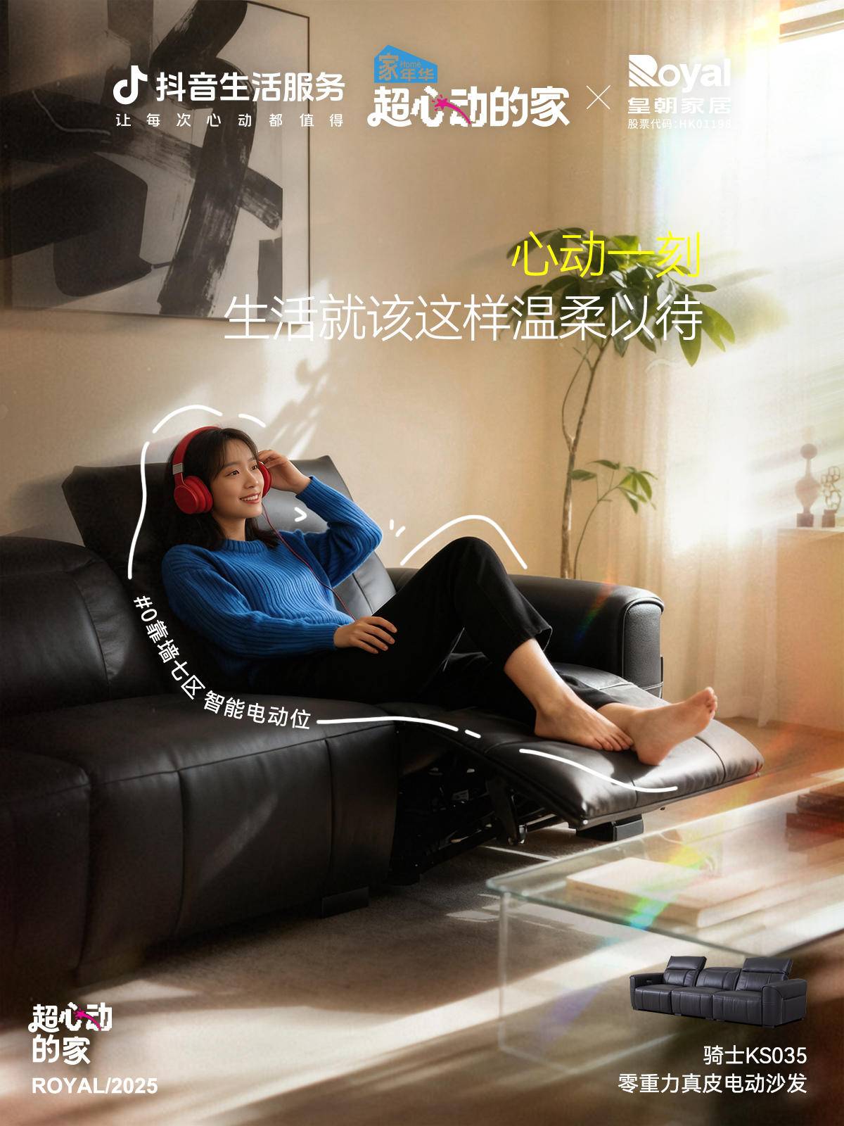 开“新”的小确幸——聚焦皇朝新品沙发,解读其零重力电动功能、真皮质感、分区承托等核心功能,探讨“回家躺在沙发上自我和解的10分钟”等情感话题。