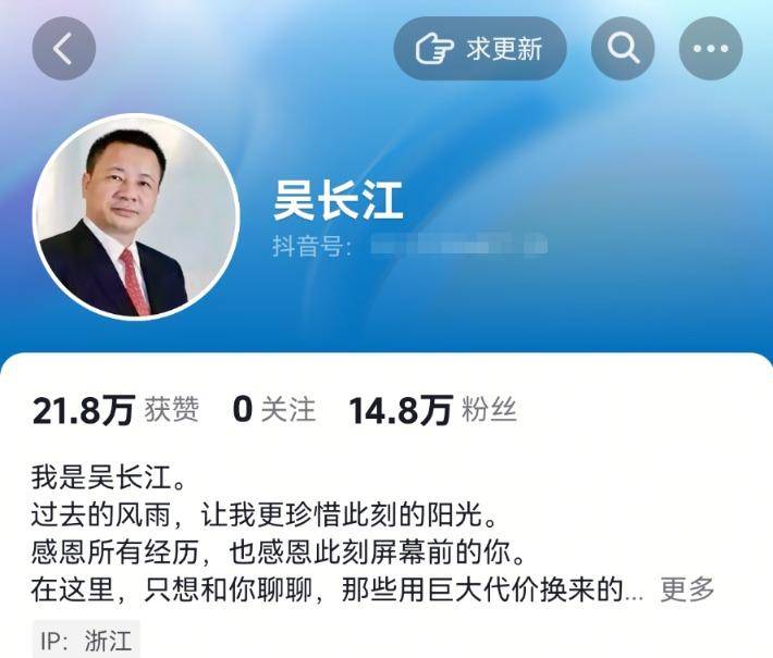 雷士照明创始人吴长江出狱后抖音走红,7天吸粉吸粉超14万人
