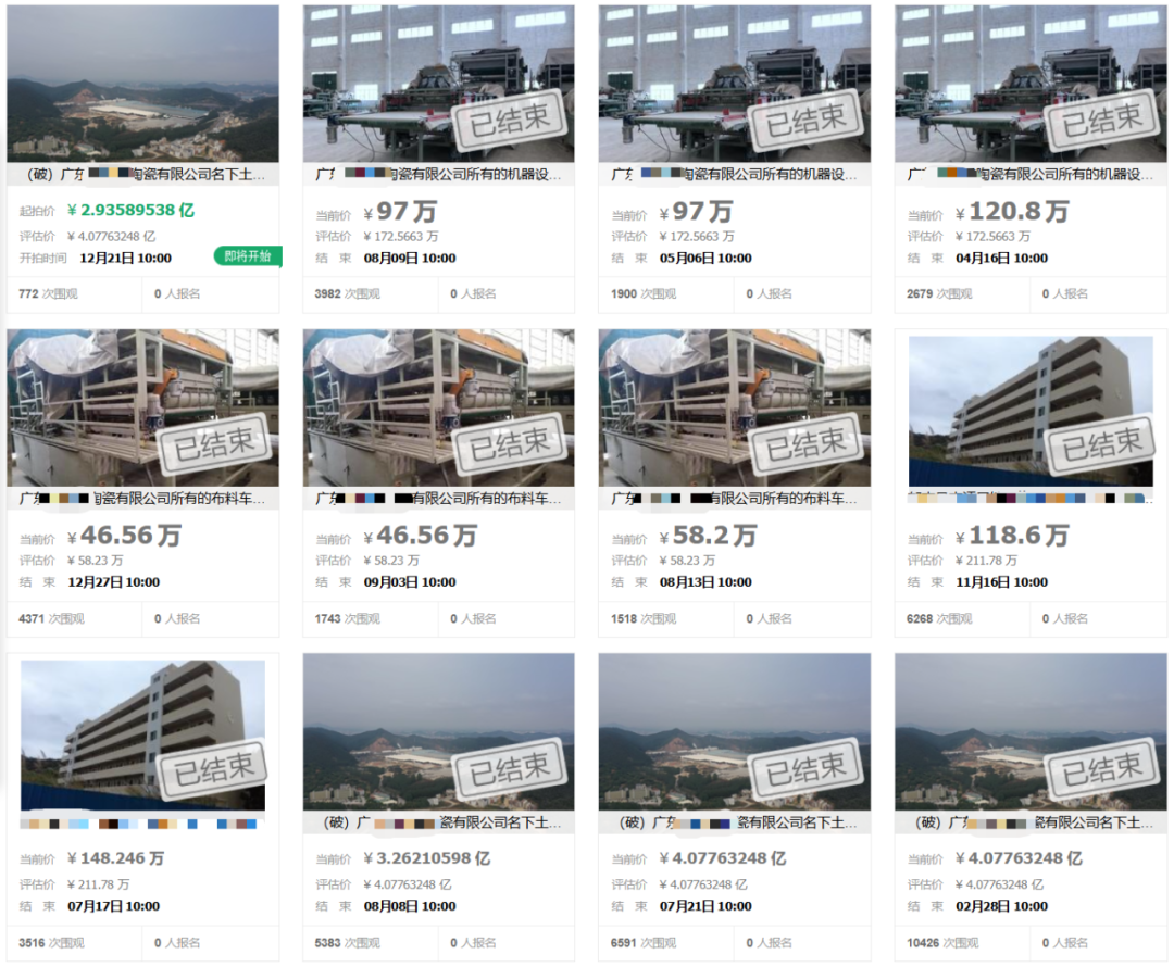 从2025年初卖到年尾,起拍价从4亿多元降低至不足3亿元。即使降了1个亿,广东这家陶瓷厂的拍卖活动依旧无人报名,其拆分出来单独拍卖的部分机器设备也无人问津。