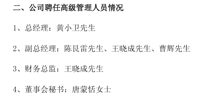 在高级管理人员方面,公司聘任陈艮雷、王晓成、曹辉为副总经理,王晓成兼任财务总监,唐蒙恬担任董事会秘书。上述人员均具备相关任职资格,不存在不符合法律法规的情形。