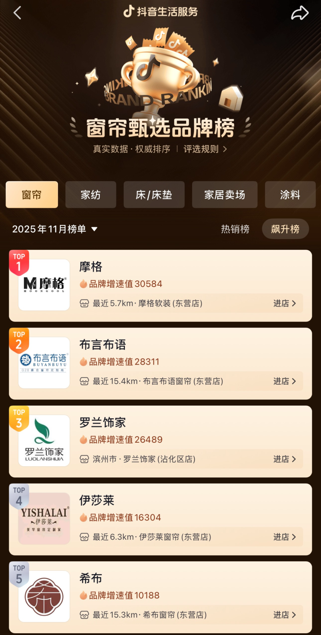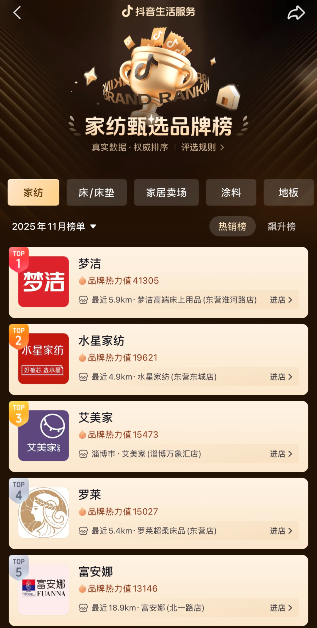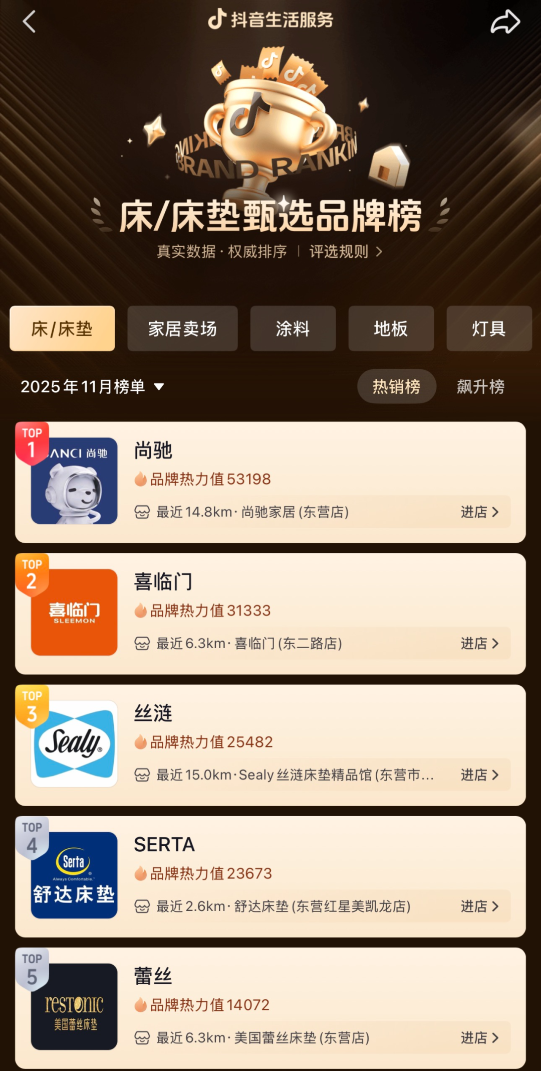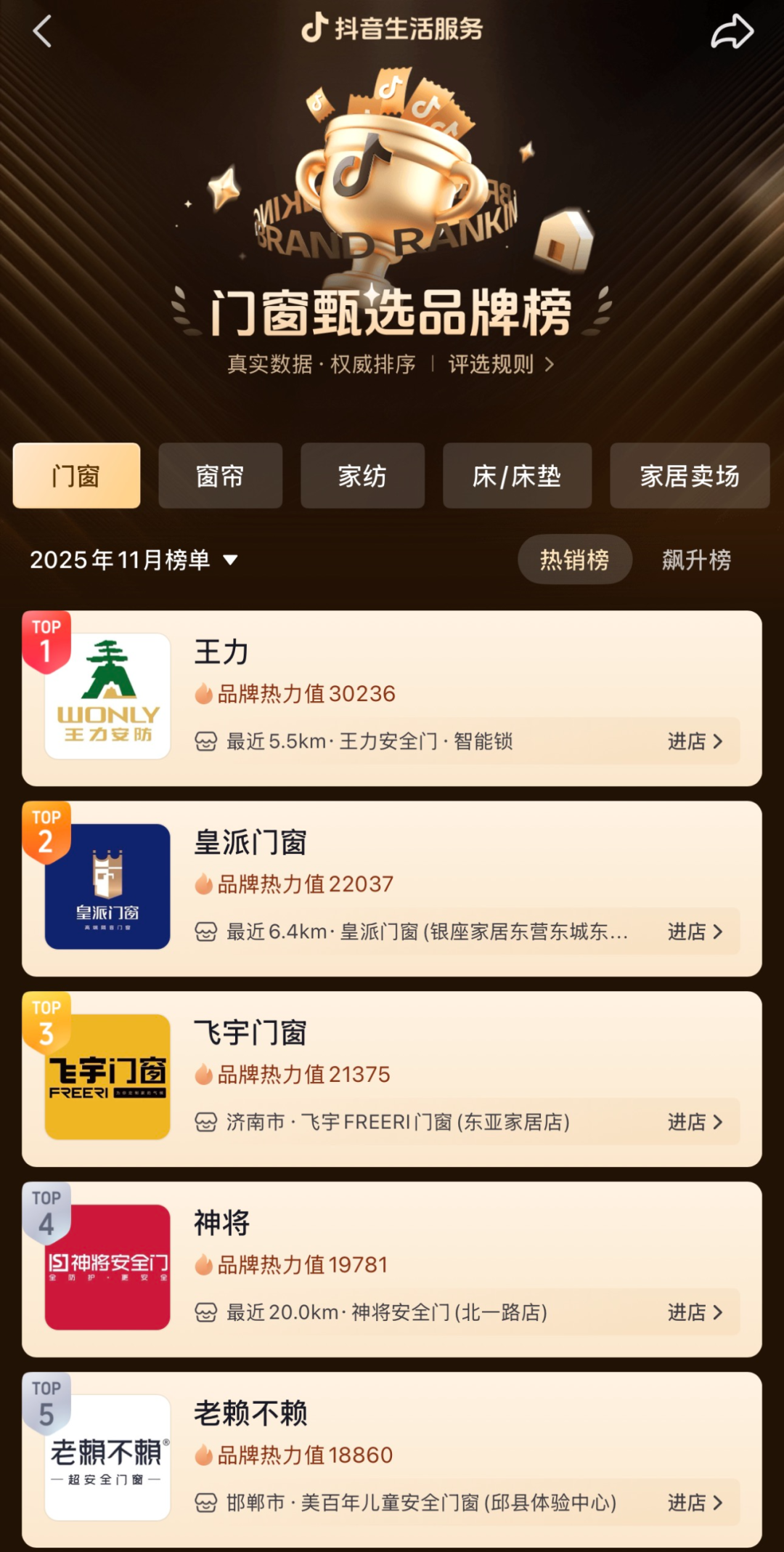 值得关注的是,随着年度收官临近,抖音生活服务家居行业即将于2026年1月初发布更具份量的《2025年度甄选品牌总榜》。相较于月度榜单,年度榜单将更全面地考察品牌在全年的交易规模与综合经营实力,对各细分品类进行系统评估。这不仅是对品牌年度成绩的一次集中检阅,也将进一步帮助品牌实现生意持续增长与行业声量爆发,或将为家居行业的线上竞争格局带来新的定义。